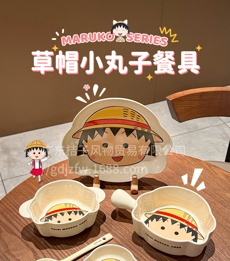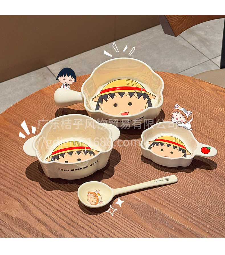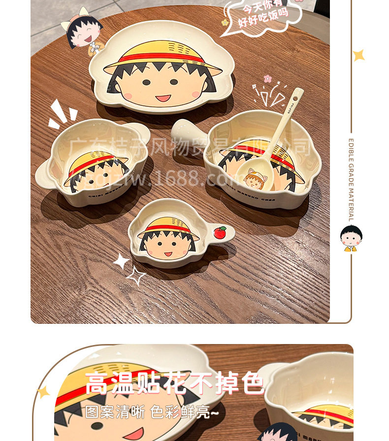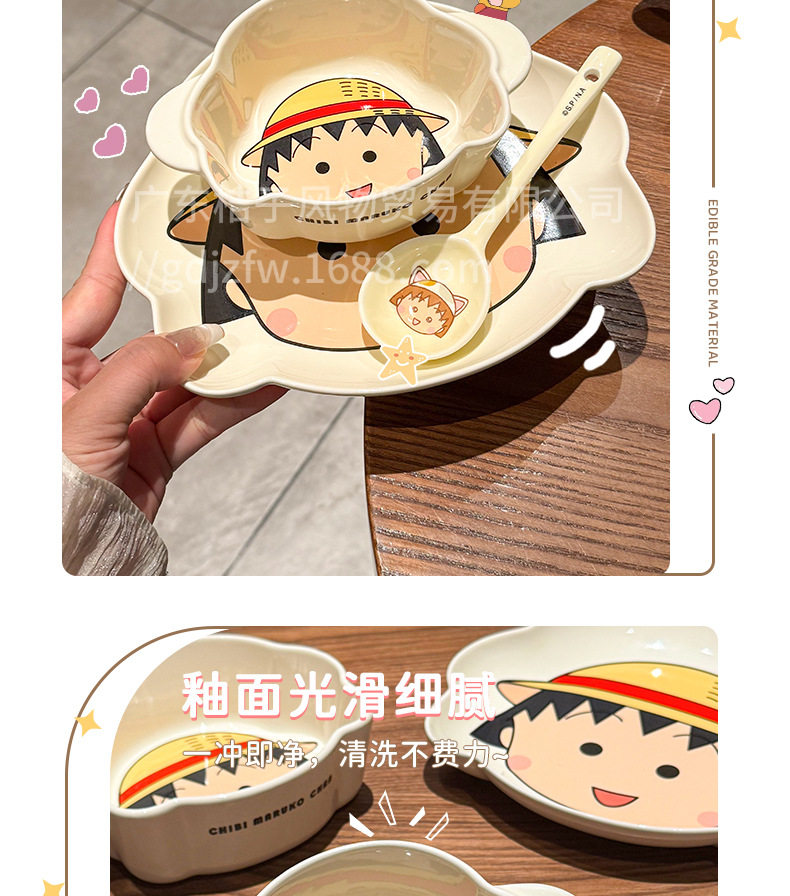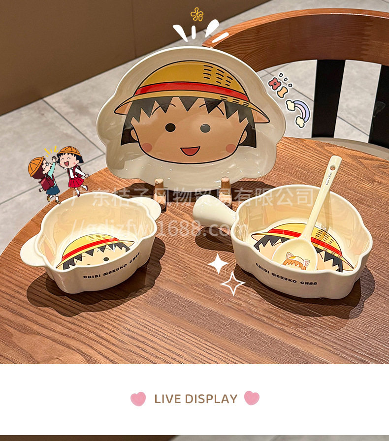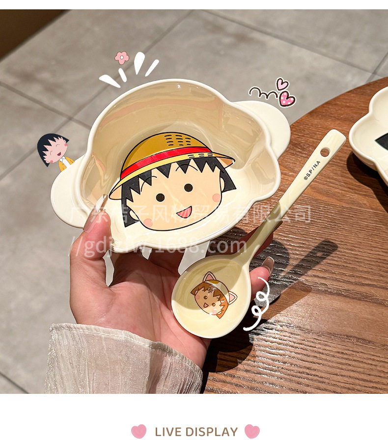 Chibi Maruko-Chan Co-Branded Ceramic Bowl and Plate Set for Home Use 2025 New High-Looking Baby Eating Personal Use