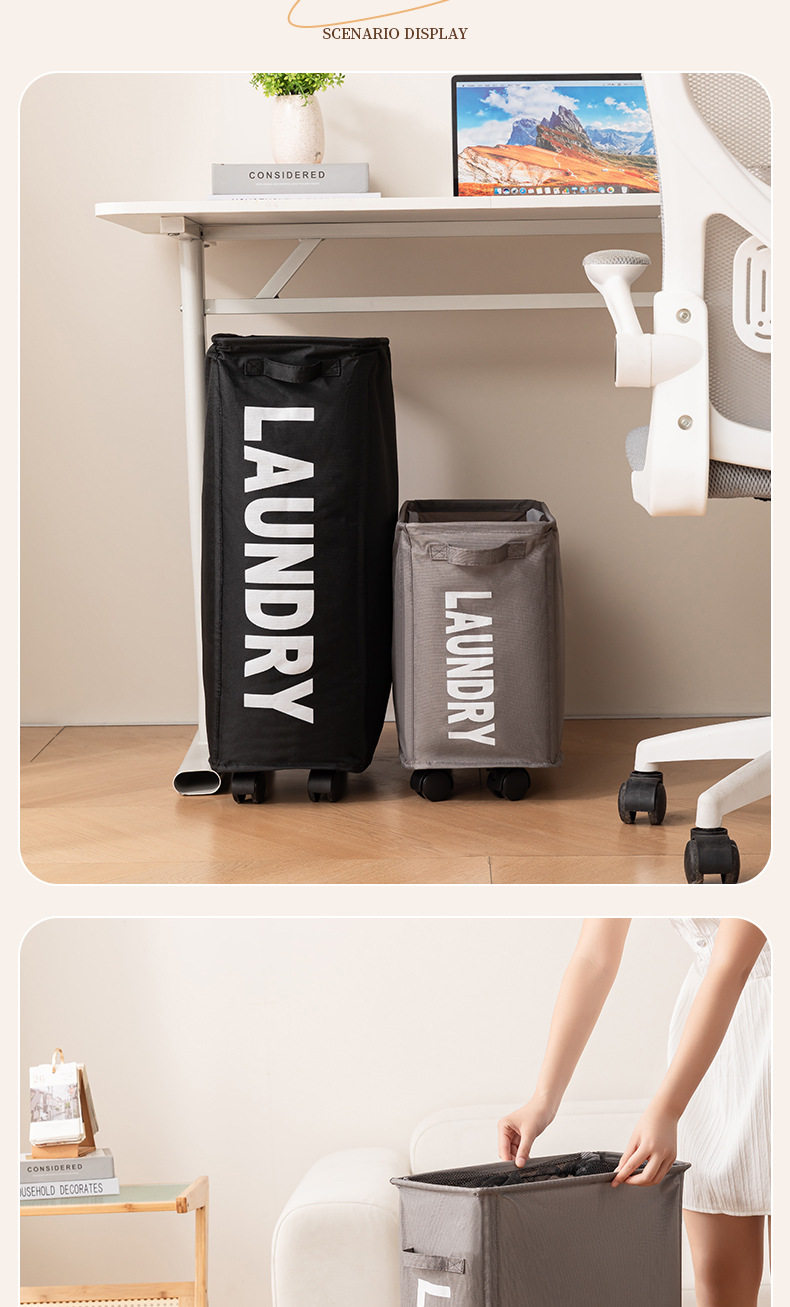 New Folding Storage Basket Large Capacity Roller Skating Dirty Clothes Basket Fabric Household Laundry Blue Durable Storage Storage Box
