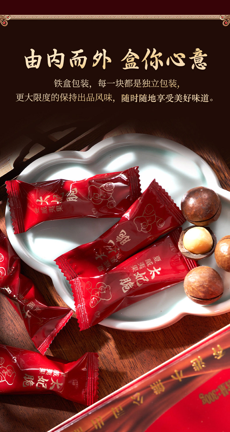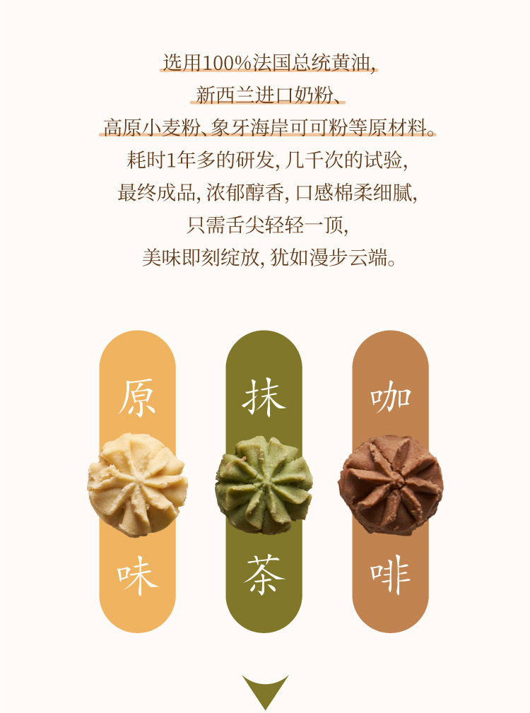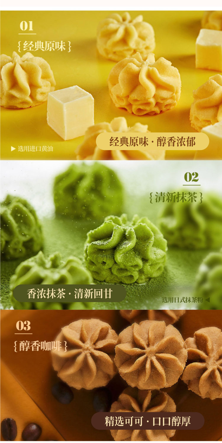 | Packaging specifications | Little bear flower song (mixed) 505g/box,Little bear flower song (original flavor) 505g/box,Macadamia nut chocolate flavor crisps 255g/box,Pine nut chocolate flavored crisps 255g/box,Hong kong style butter egg roll king 360g/box,Hong kong style pop-up cookies (salted egg yolk) 500g/box,Hong kong style pop-up cookies (cranberry) 500g/box,Black sesame butter coconut cake 230g/box,Salted egg yolk butter coconut cake 230g/box,Salted egg yolk liquid egg roll 336g/box,Cheese liquid egg roll 336g/box,Durian liquid egg roll 336g/box,Cranberry snowflake crispy 225g/box,Multi-grain yogurt and milk puff 225g/box,Original egg pie 360g/box,Brown sugar egg pie 360g/box,Hong kong style chocolate cone 500g/box,Hong kong style original egg roll 500g/box,Hong kong style pineapple cake 240g/box,Original nougat 200g/bag,Nut toffee crisp 300g/box,Nut peach crisp king 360g/pack,Bear jar fruit flavored yogurt candy 120g/can,Chocolate flavored crispy cups 240g/can,Hazelnut chocolate 330g (hardcover gift box) |