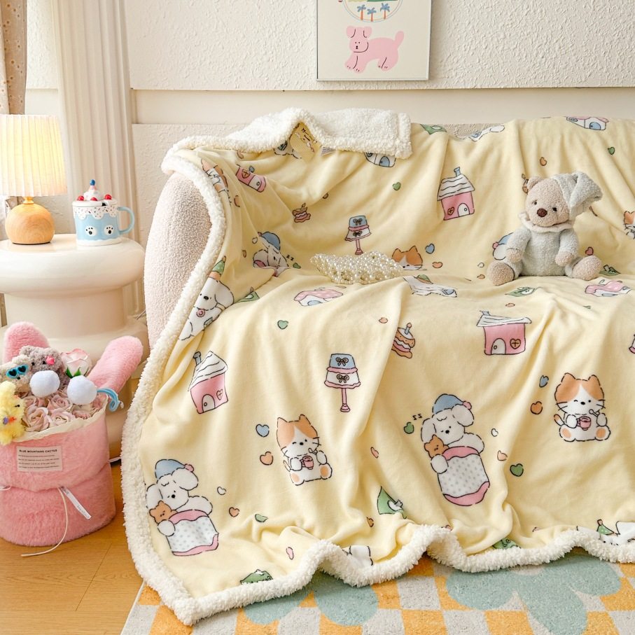 Mi Chun Fuanna Lamb Fleece Nap Blanket Thickened Warm Autumn Winter Blanket Solid Color Student Dormitory Throw
