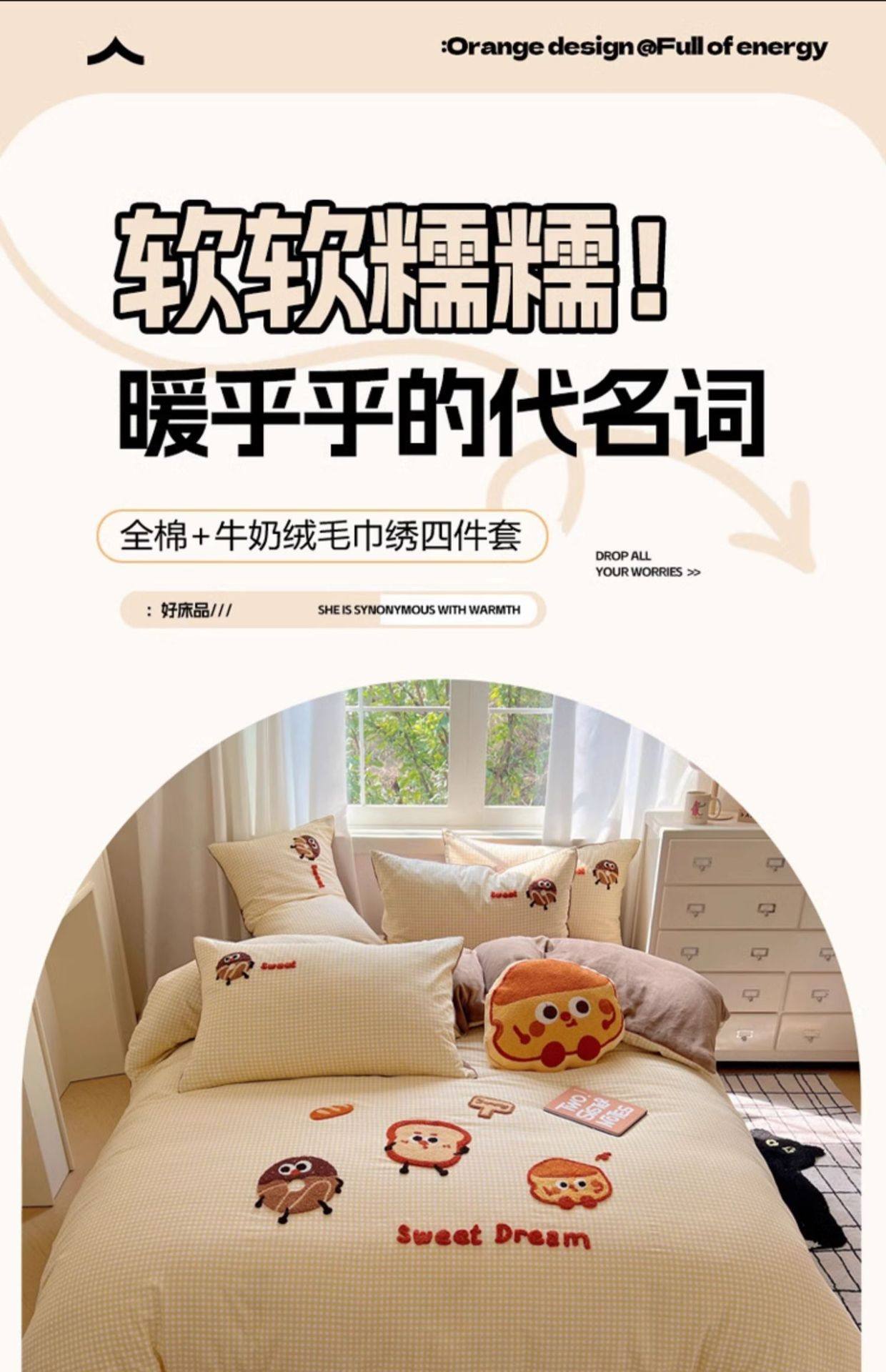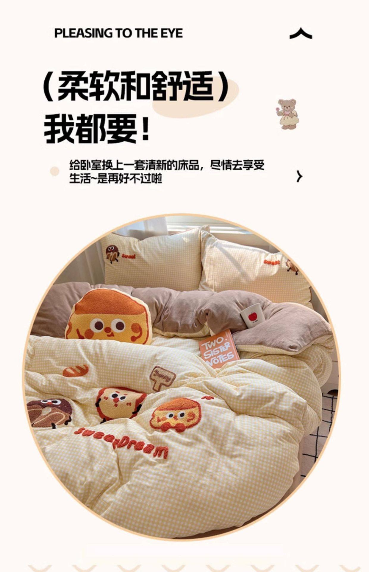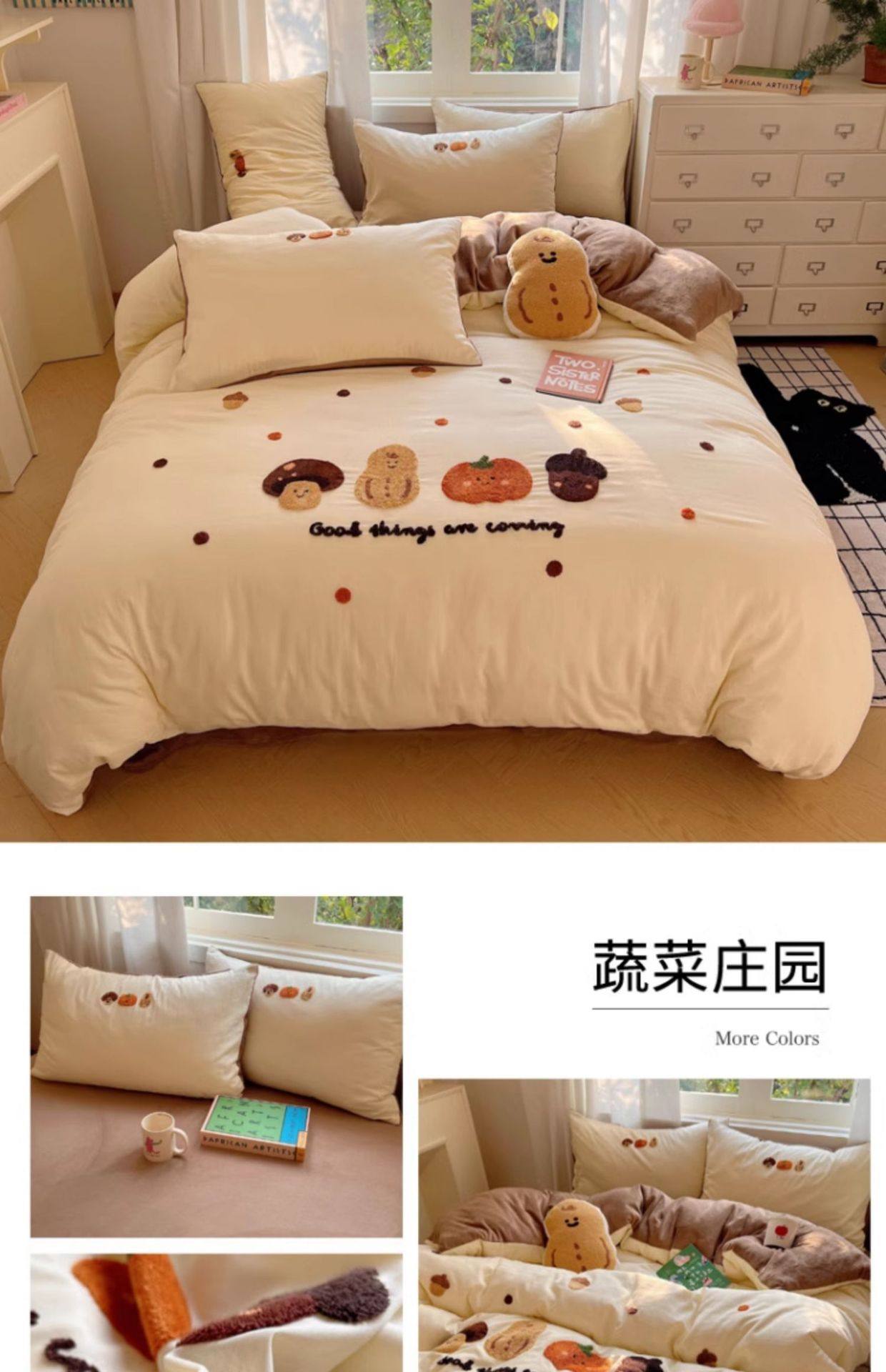 Autumn and Winter Ab Surface Pure Cotton Milk Velvet Bed Four-Piece Bed Bed Sheets Set Pure Cotton Coral Velvet Thickeneded Fleece-Lined Quilt Cover Bedding