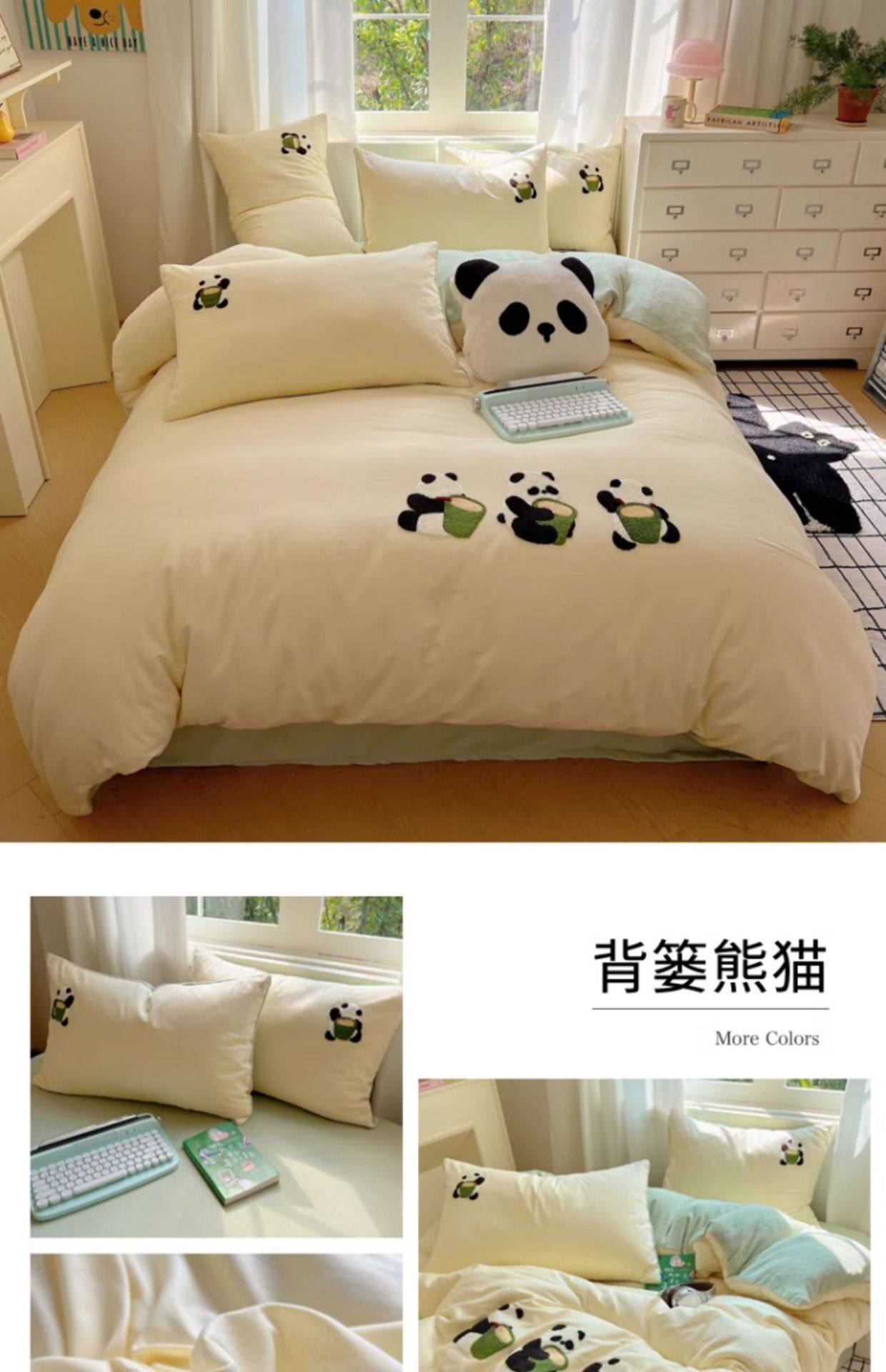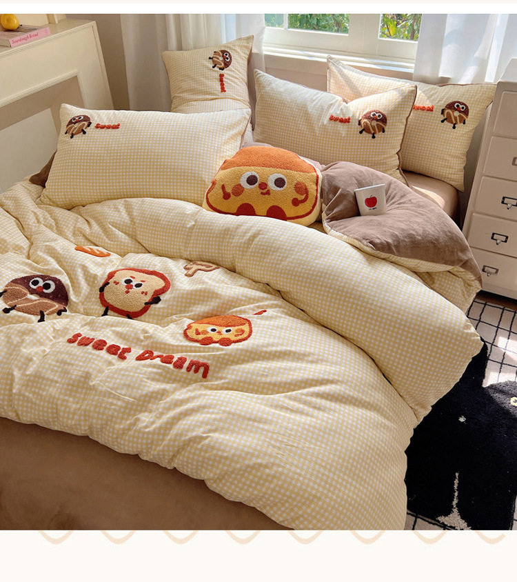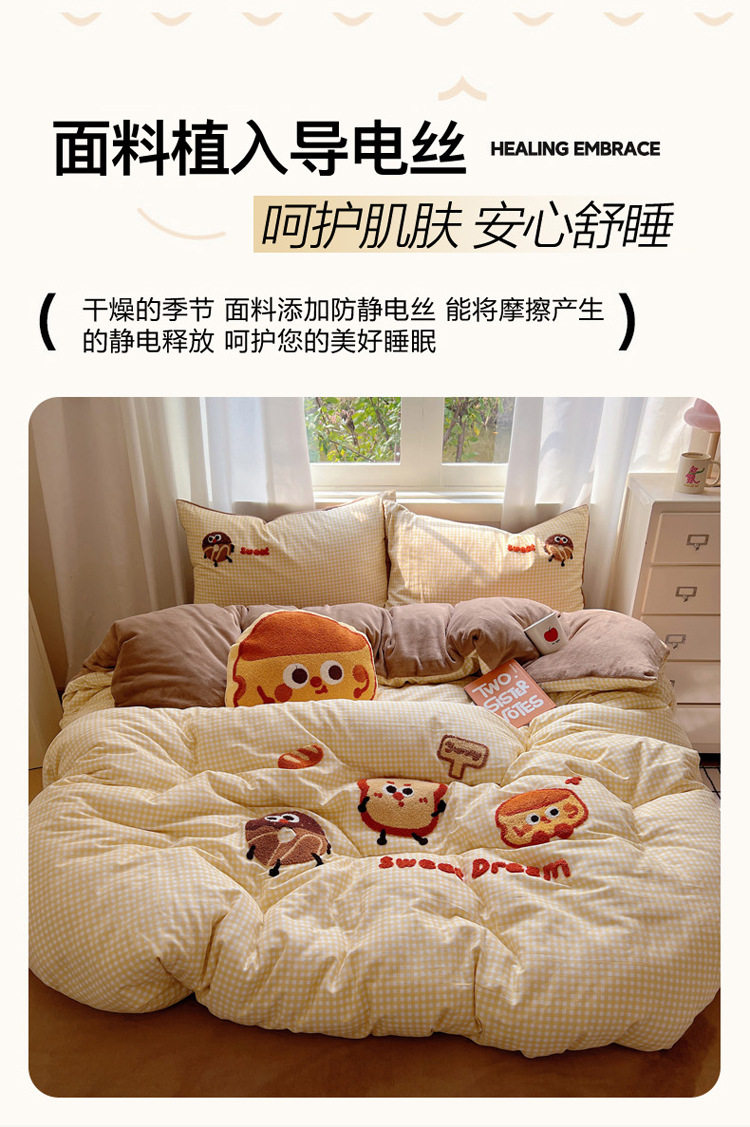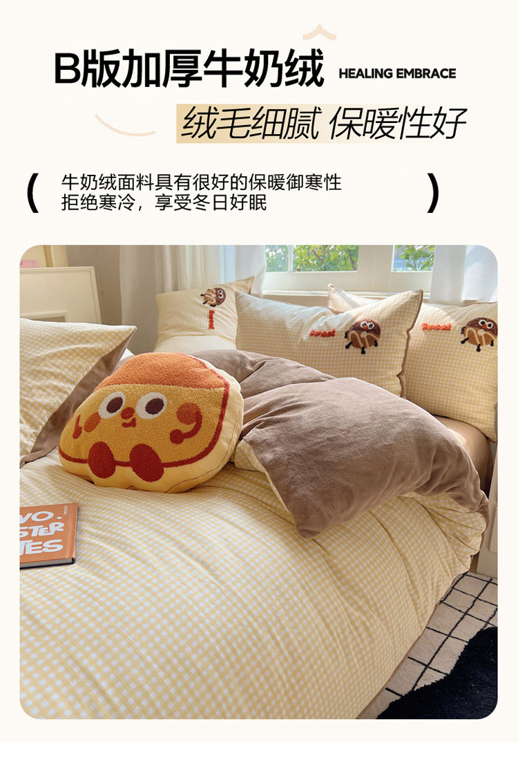 Autumn and Winter Ab Surface Pure Cotton Milk Velvet Bed Four-Piece Bed Bed Sheets Set Pure Cotton Coral Velvet Thickeneded Fleece-Lined Quilt Cover Bedding