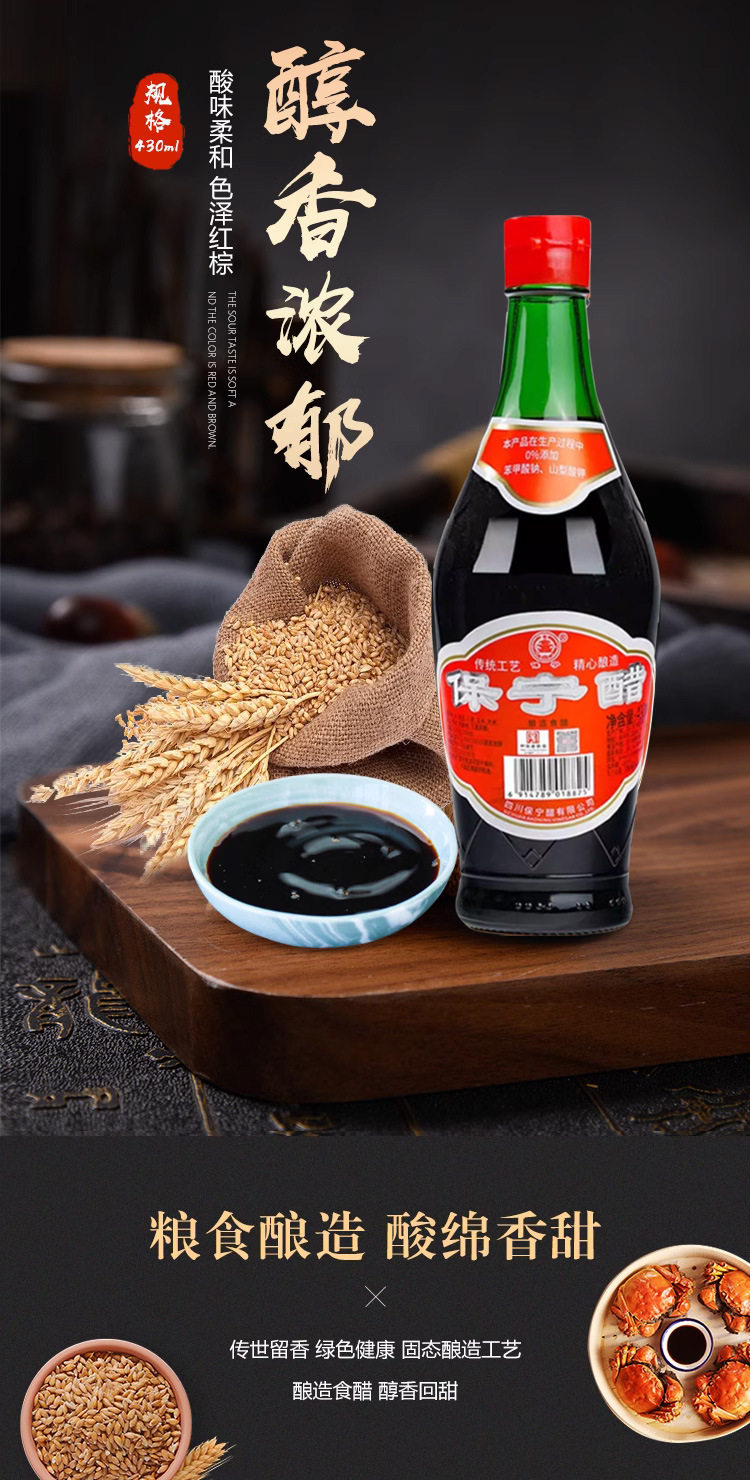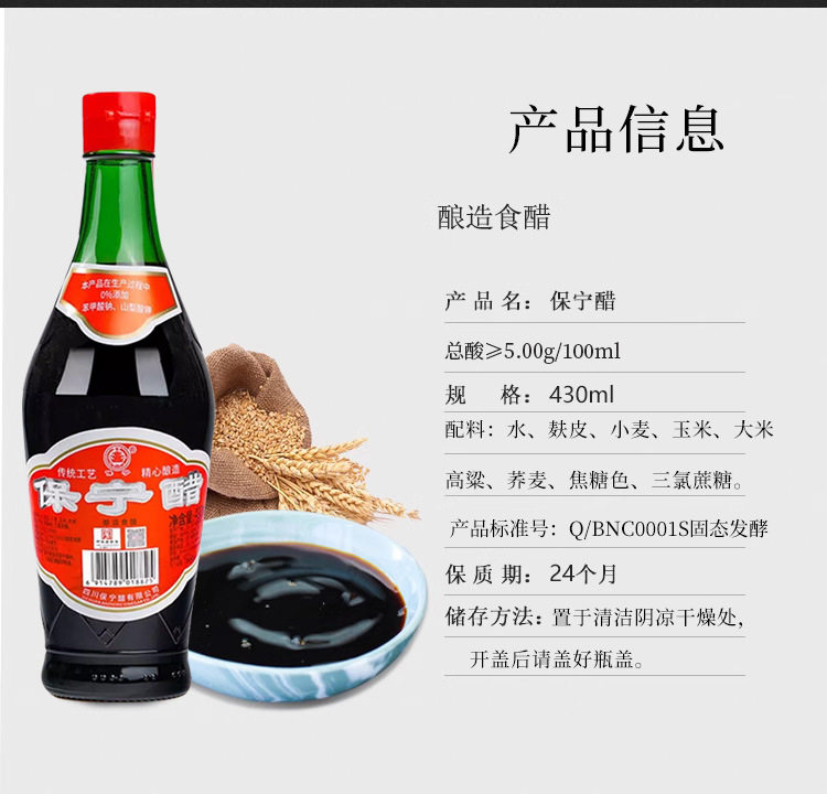 Baoning Vinegar Grade 1 430ml Bottled Household Edible Small Bottle Grain Brewed Cold Dumpling Speciality from Sichuan