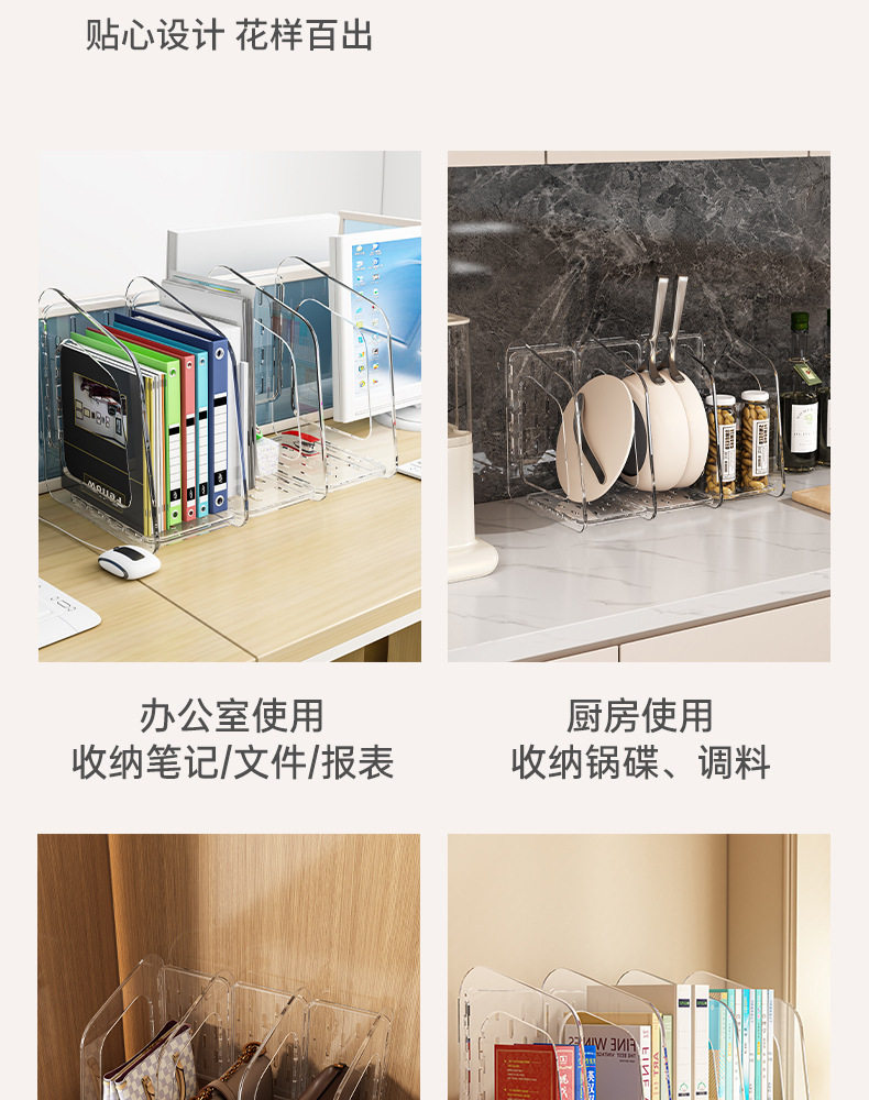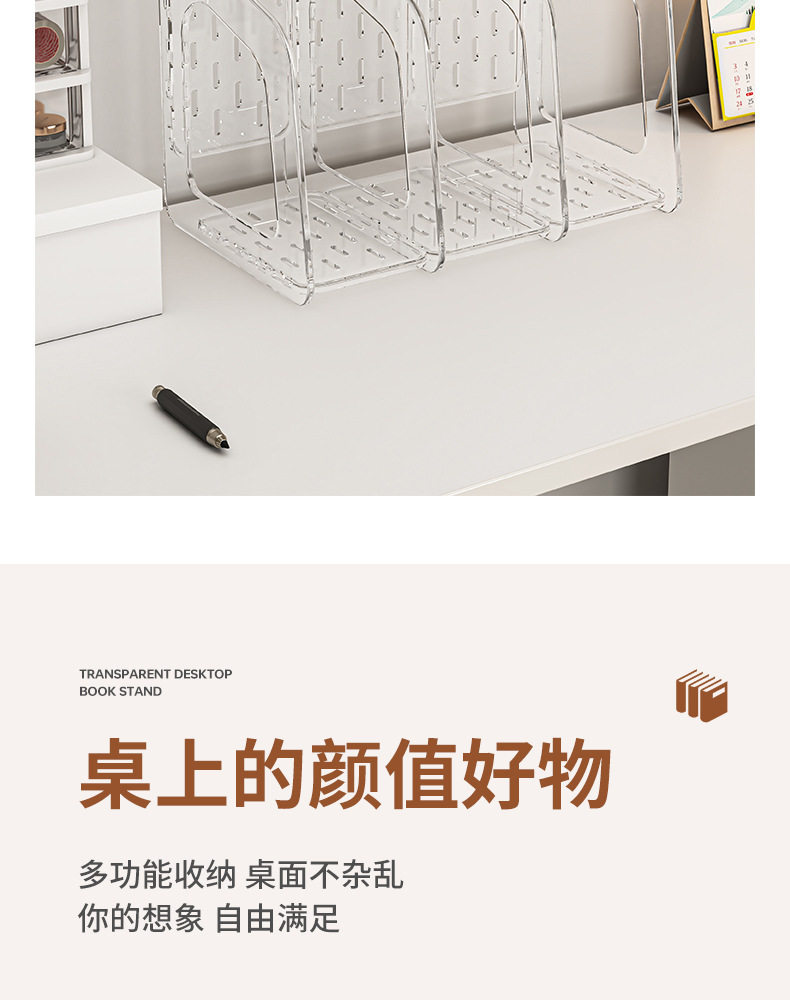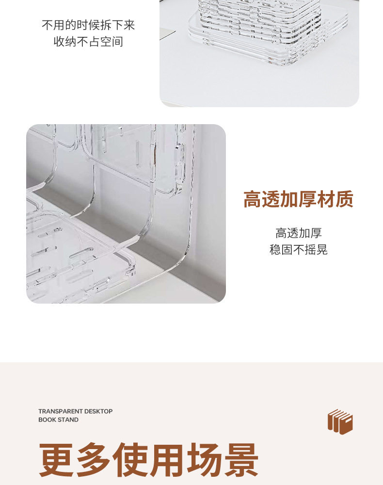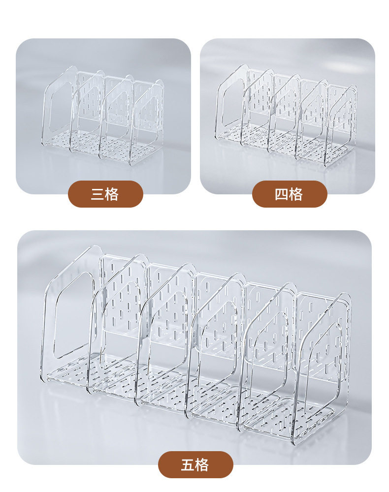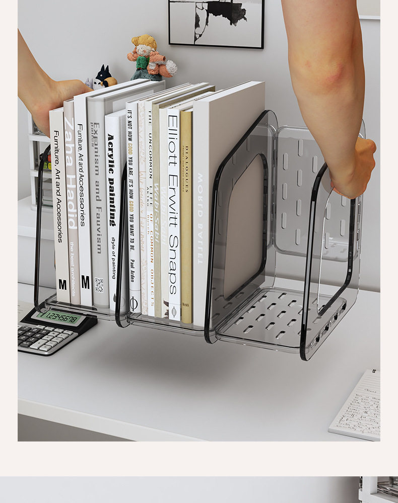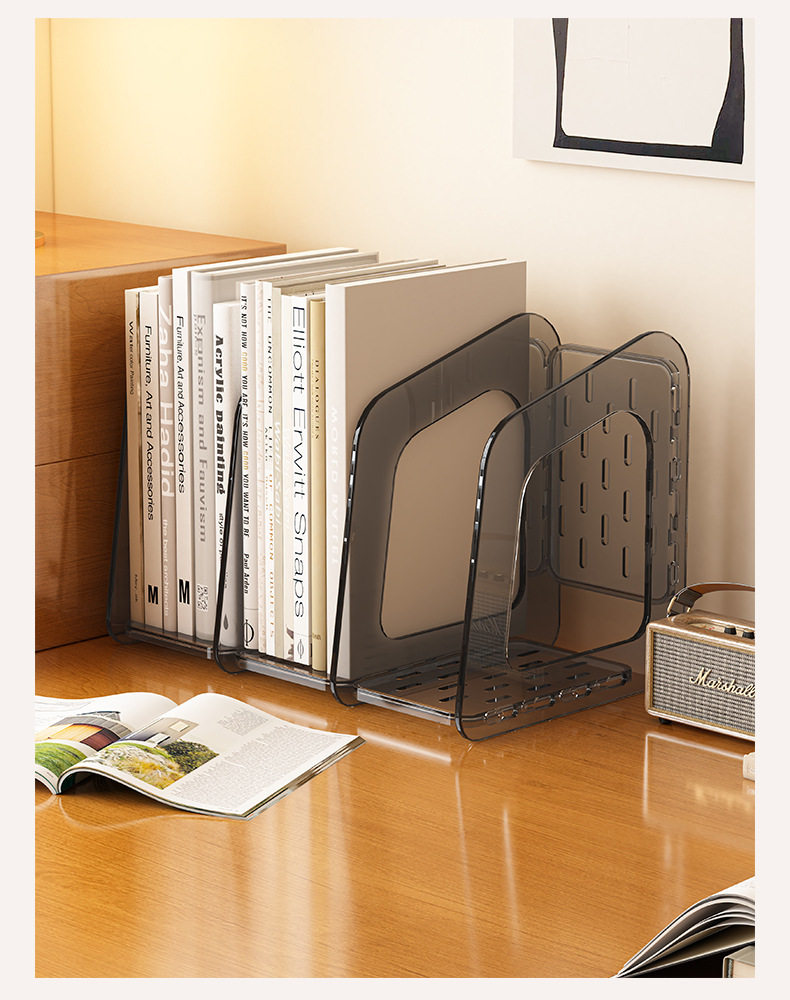 Acrylic Transparent Book Stand, Desktop Bookshelf, Partition for Organizing Books, Creative Design with Three Compartments