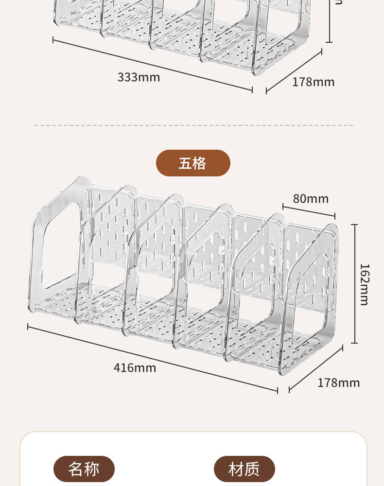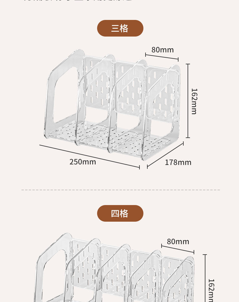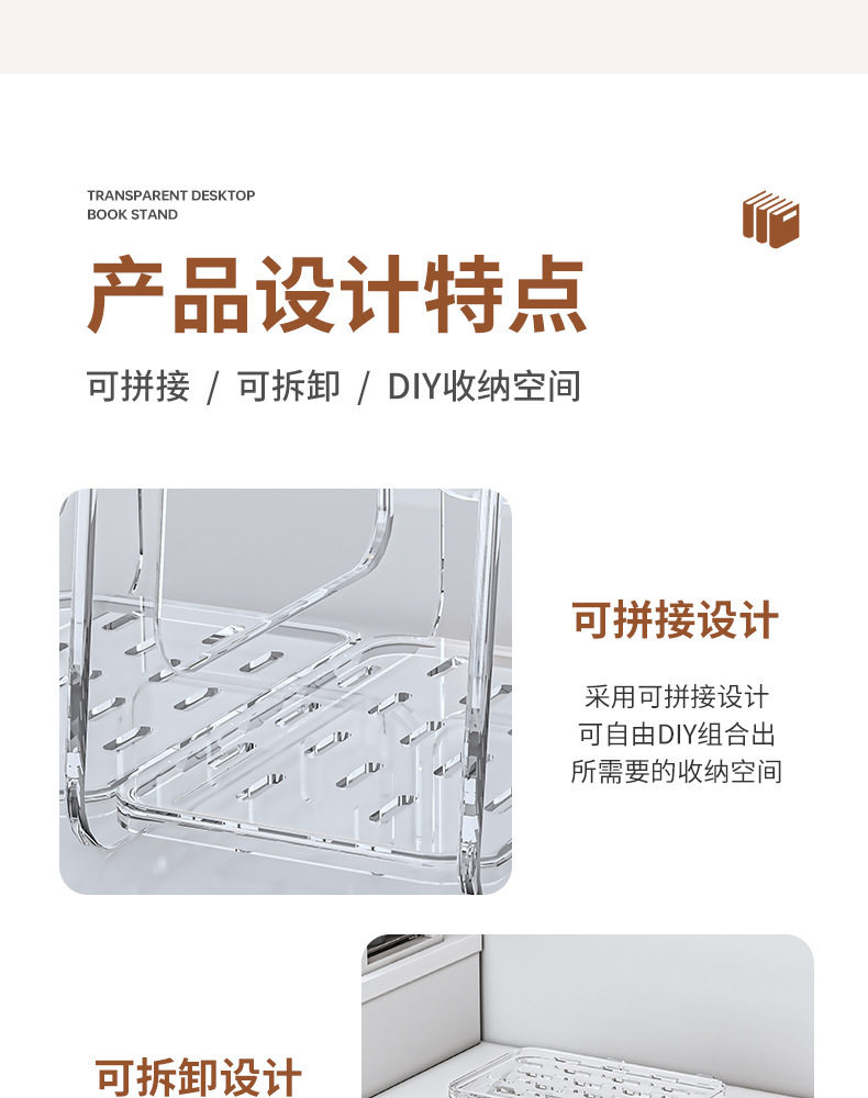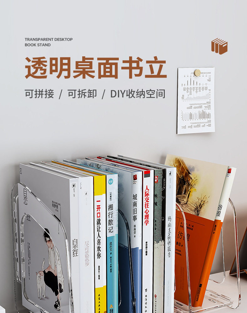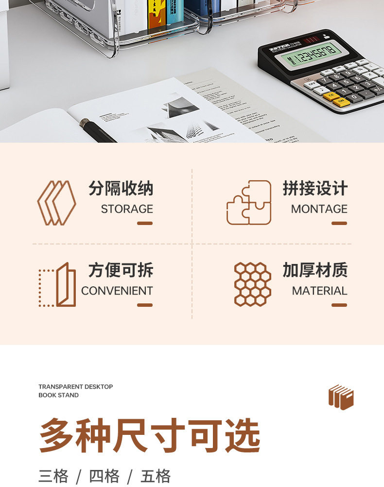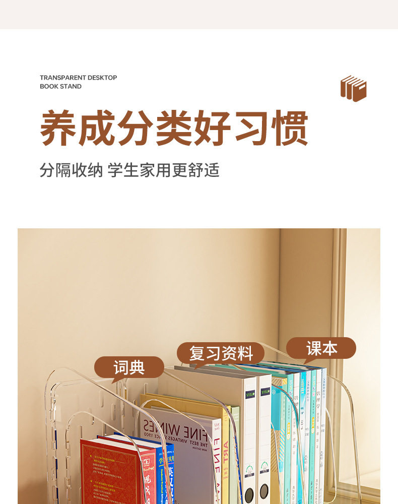 Acrylic Transparent Book Stand, Desktop Bookshelf, Partition for Organizing Books, Creative Design with Three Compartments