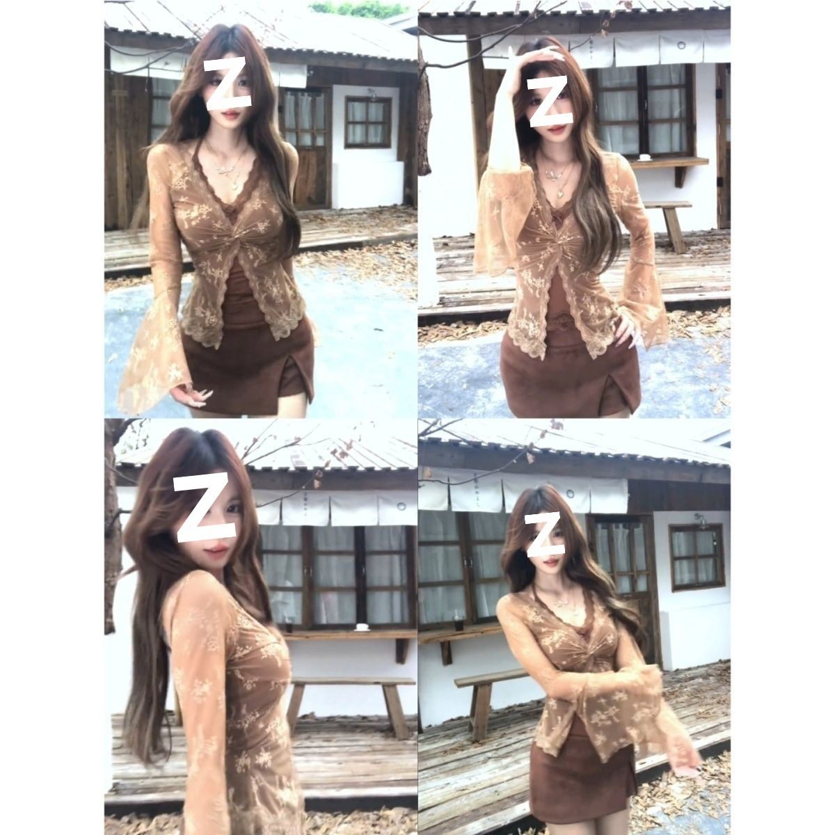 | Color | Skirt,Brown fake two-piece top,Brown fake two-piece top + skirt |