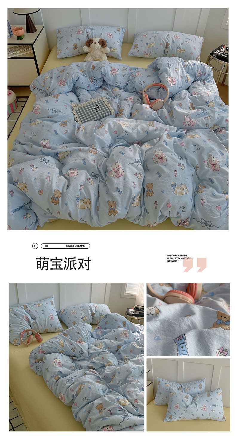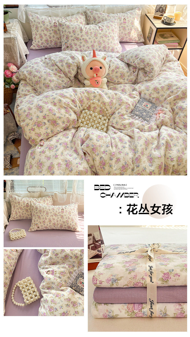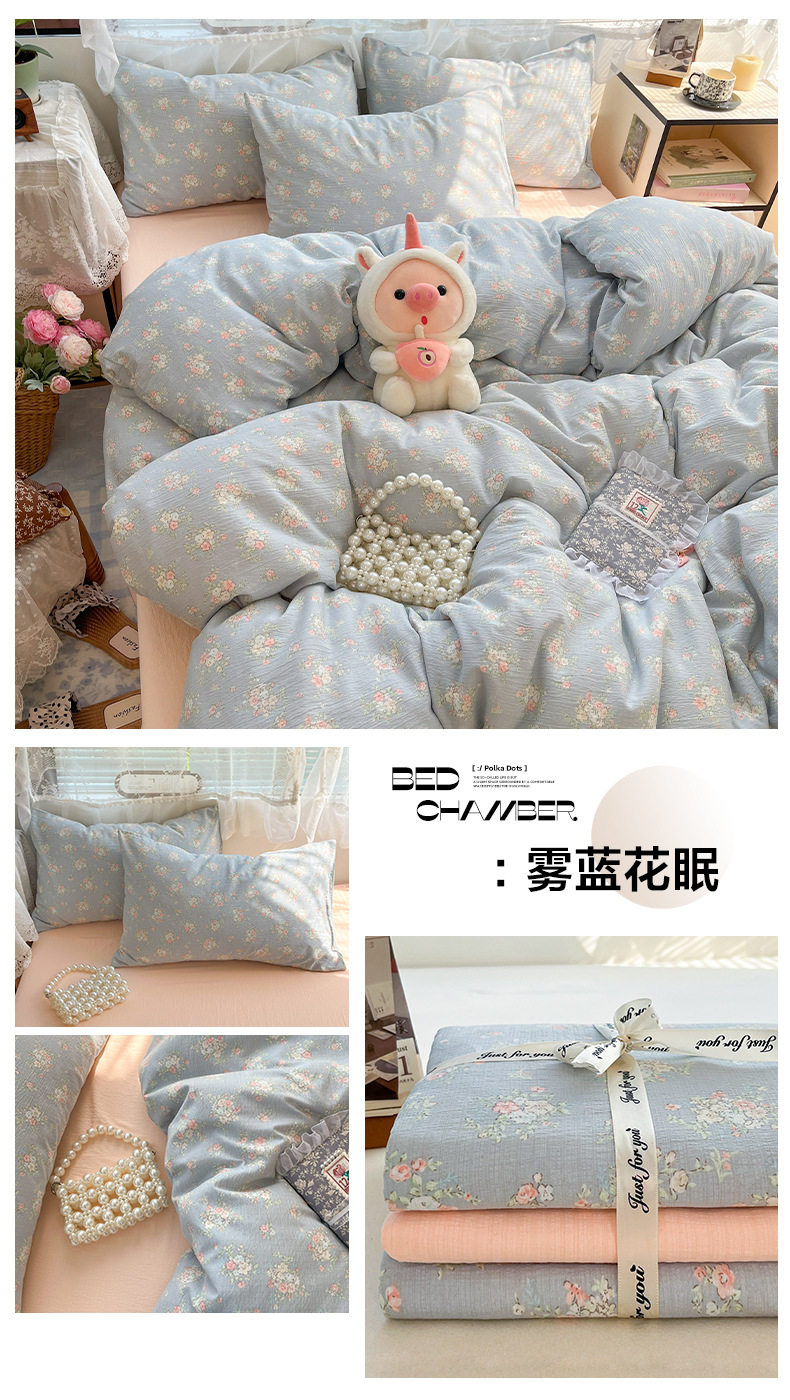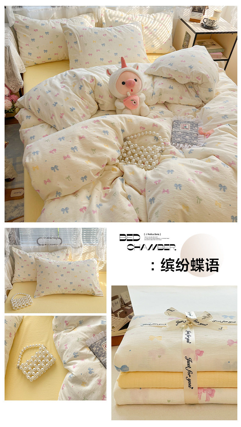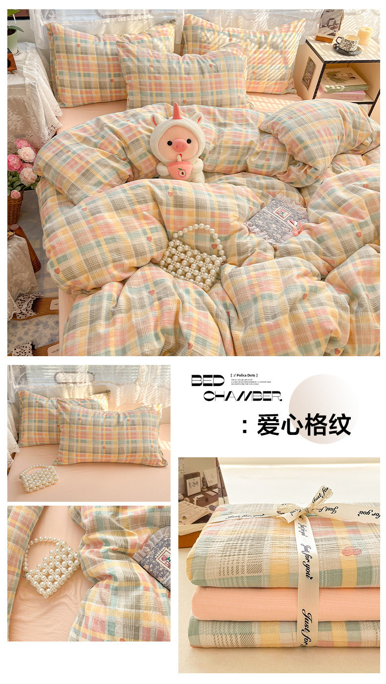 Class a Pure Cotton Maternal and Infant Grade Double-Layer Yarn Four-Piece Set Ins Cotton Naked Sleeping Bed Sheetss Quilt Cover Dormitory Three-Piece Set