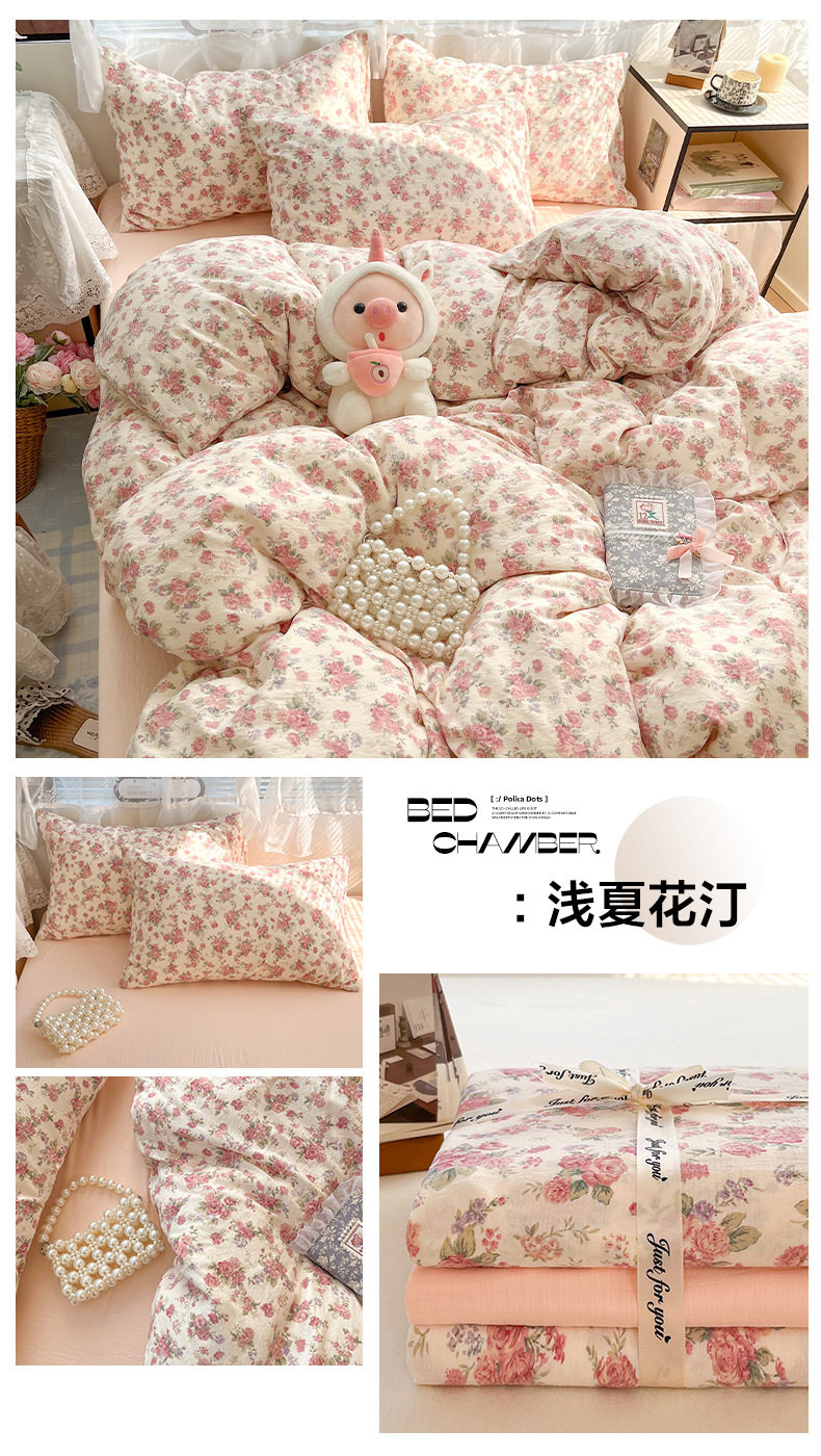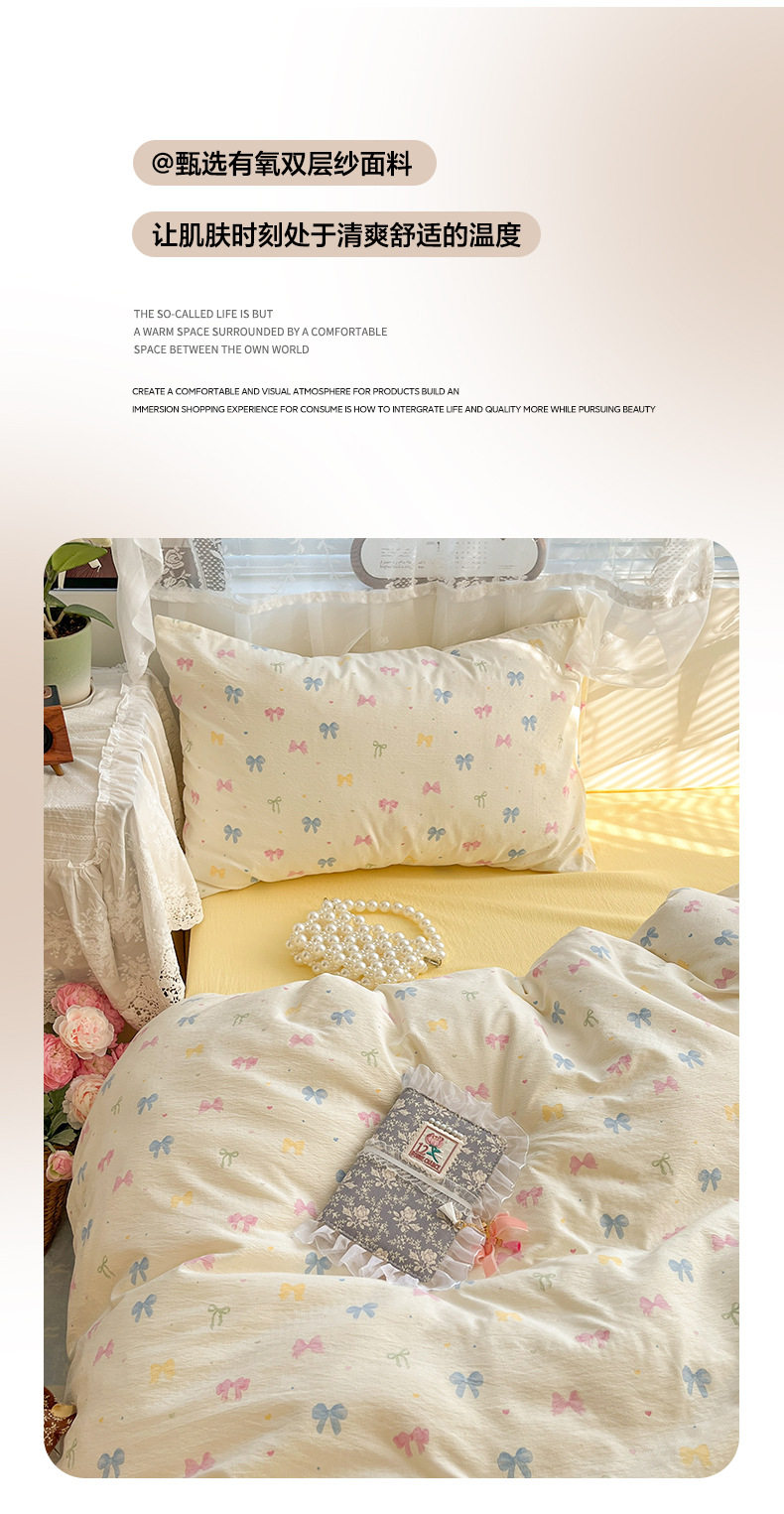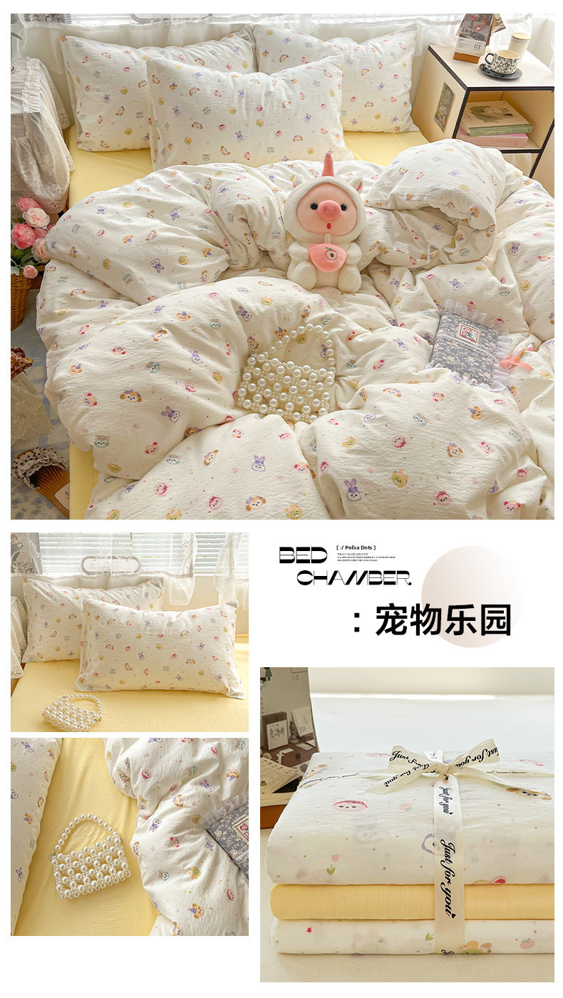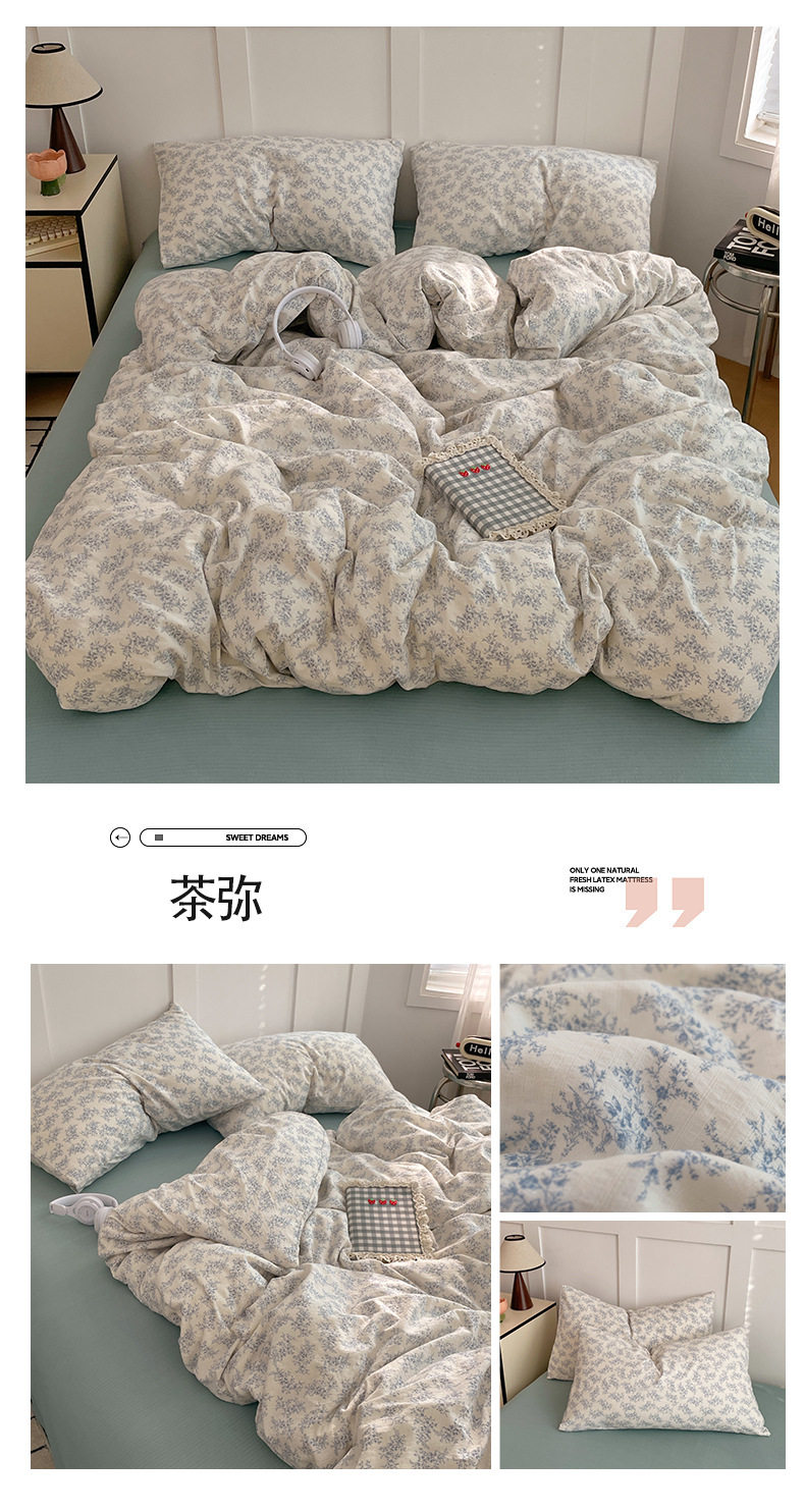 Class a Pure Cotton Maternal and Infant Grade Double-Layer Yarn Four-Piece Set Ins Cotton Naked Sleeping Bed Sheetss Quilt Cover Dormitory Three-Piece Set