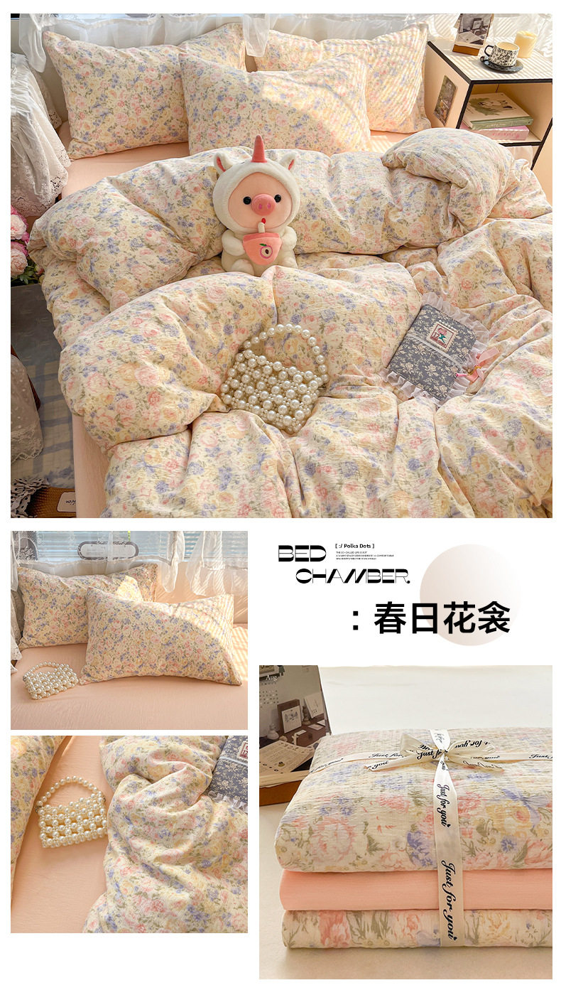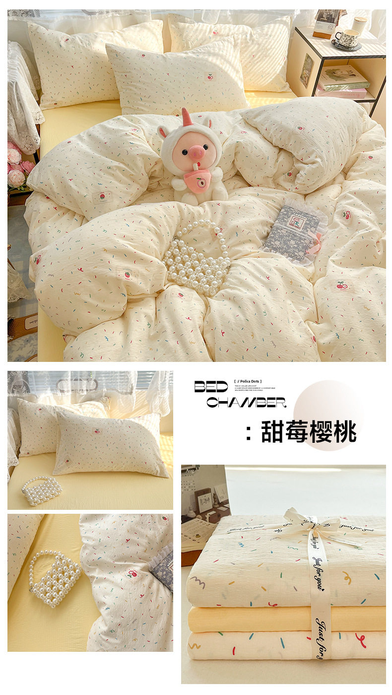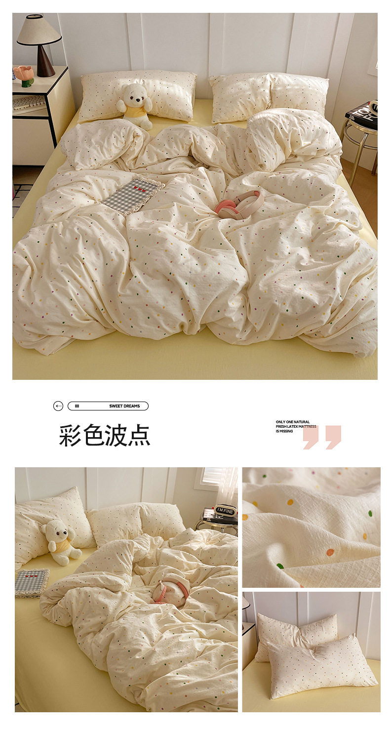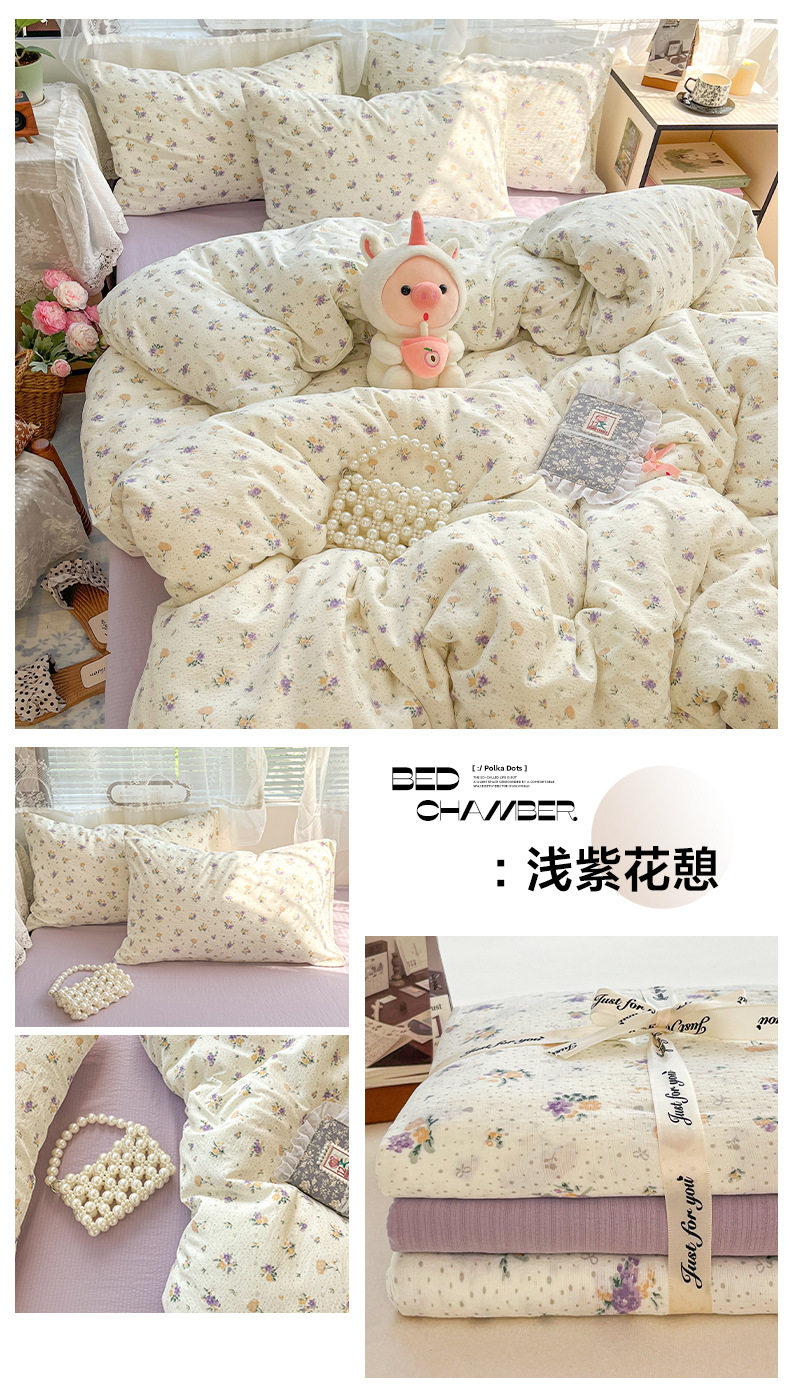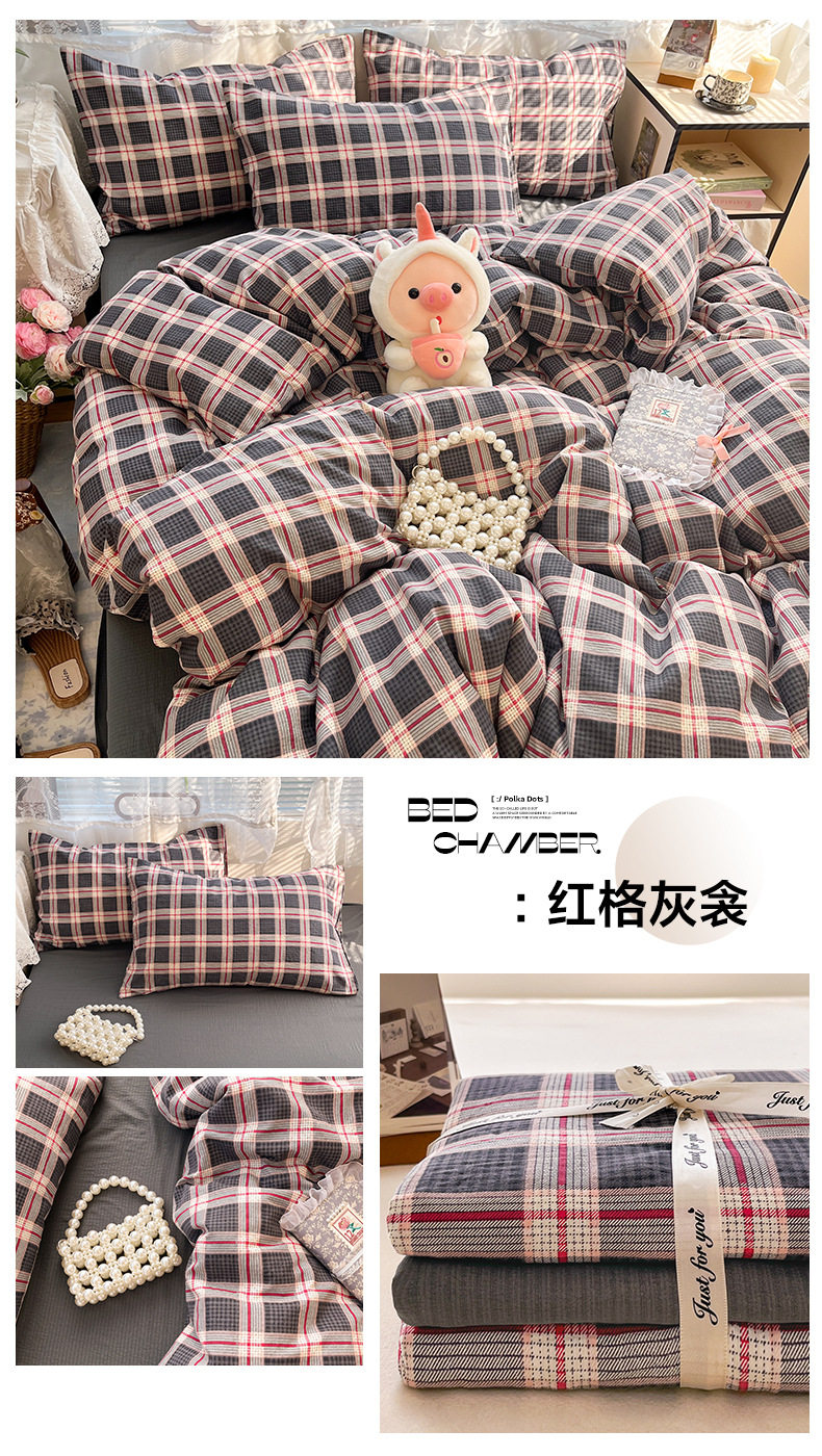 Class a Pure Cotton Maternal and Infant Grade Double-Layer Yarn Four-Piece Set Ins Cotton Naked Sleeping Bed Sheetss Quilt Cover Dormitory Three-Piece Set