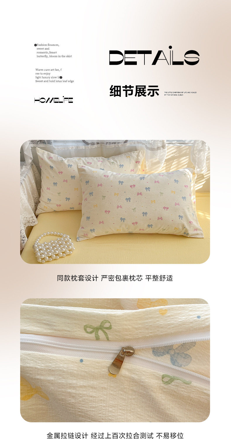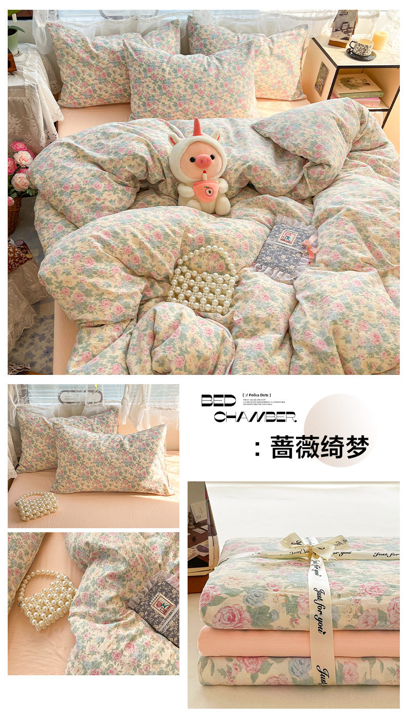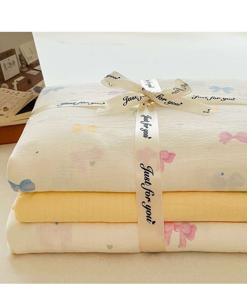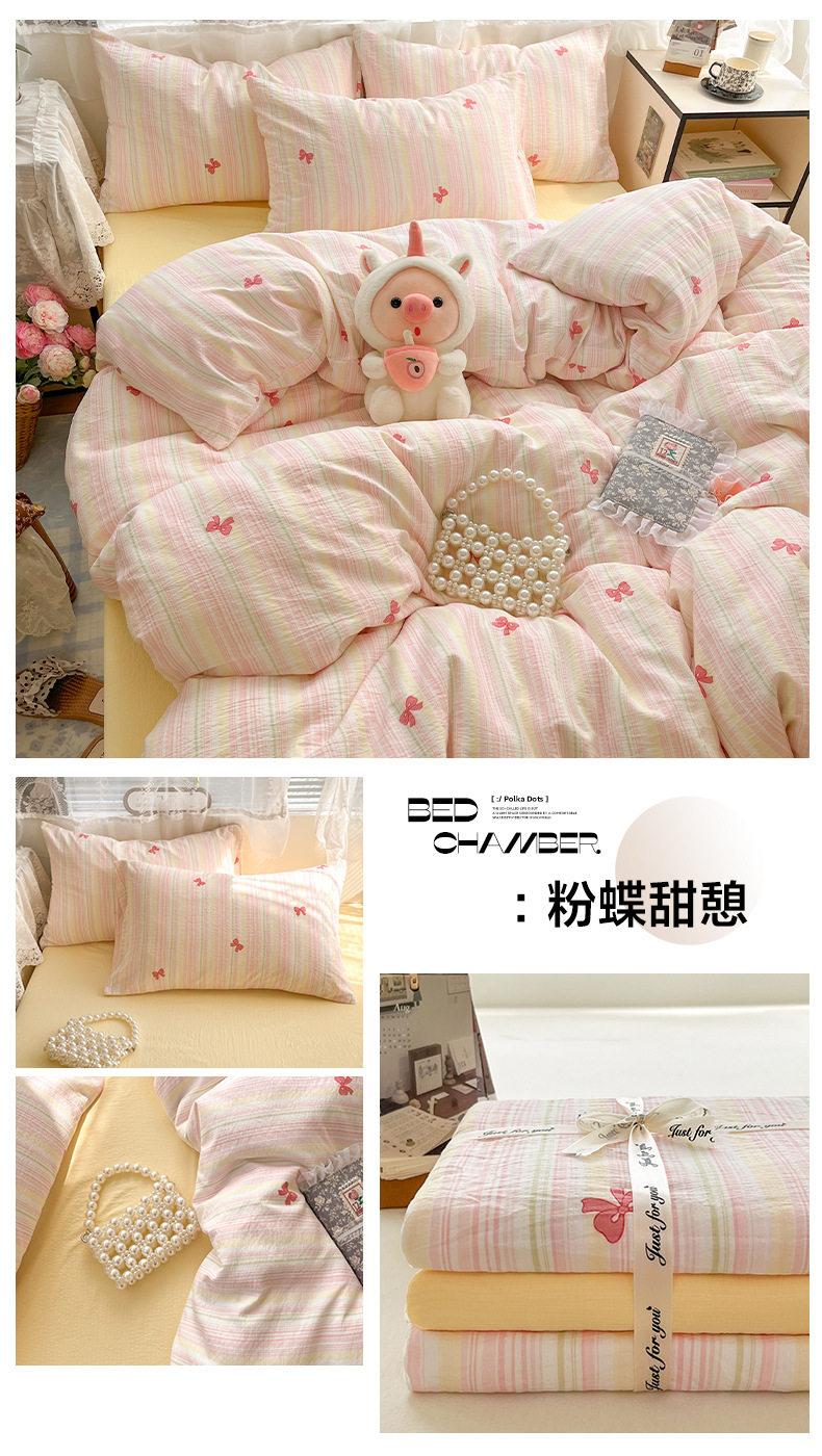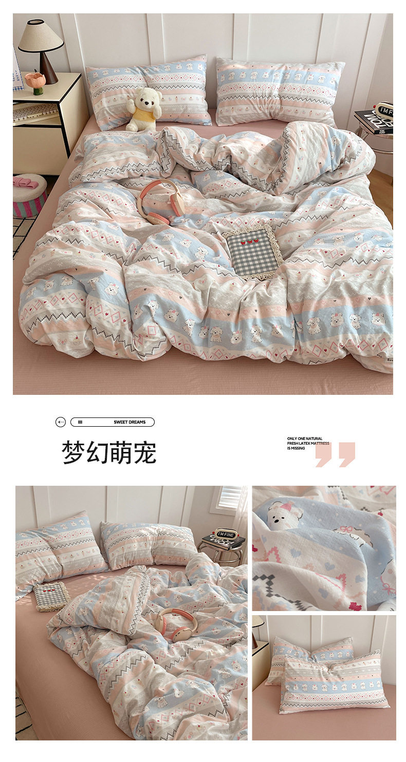 Class a Pure Cotton Maternal and Infant Grade Double-Layer Yarn Four-Piece Set Ins Cotton Naked Sleeping Bed Sheetss Quilt Cover Dormitory Three-Piece Set