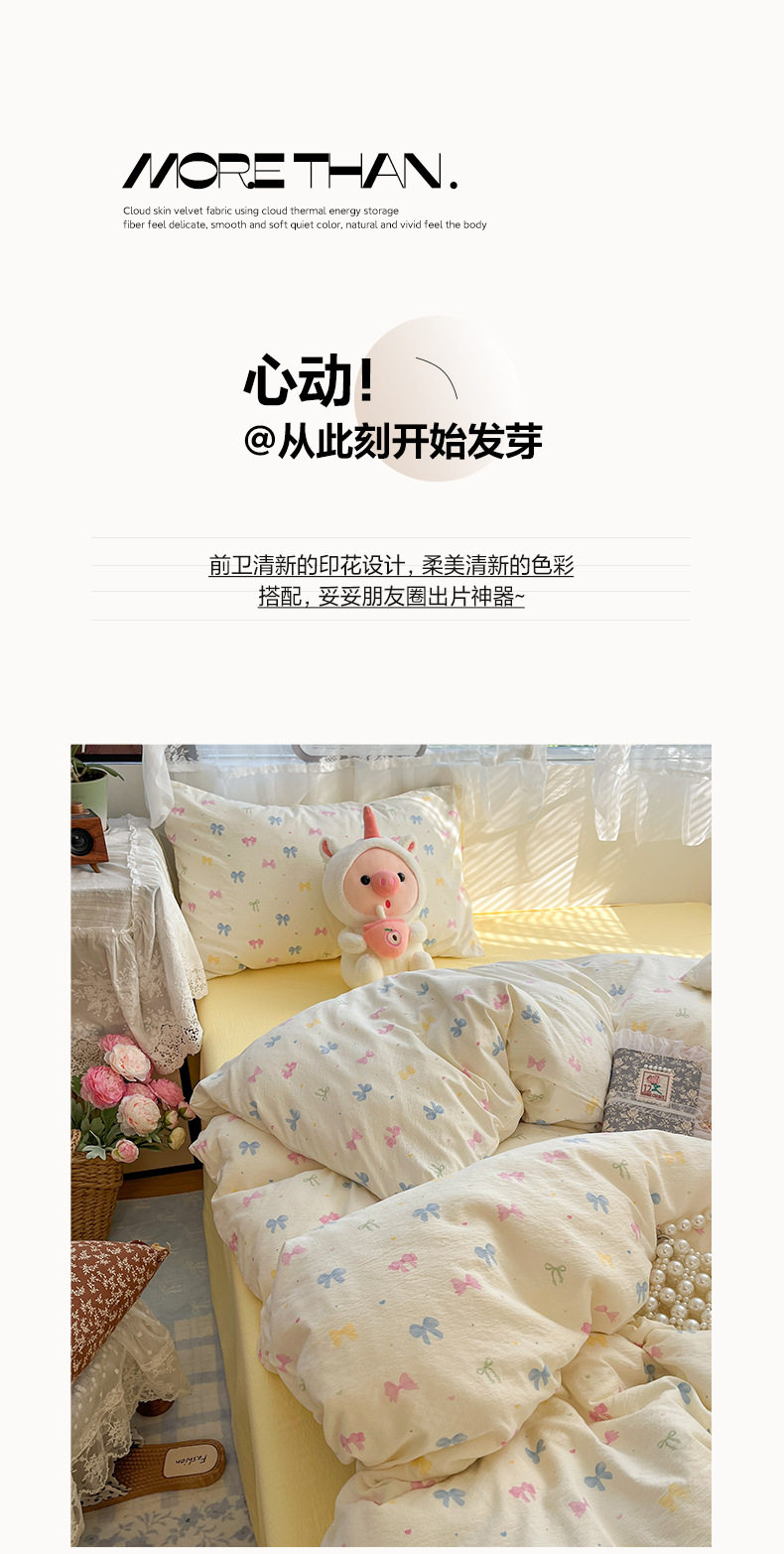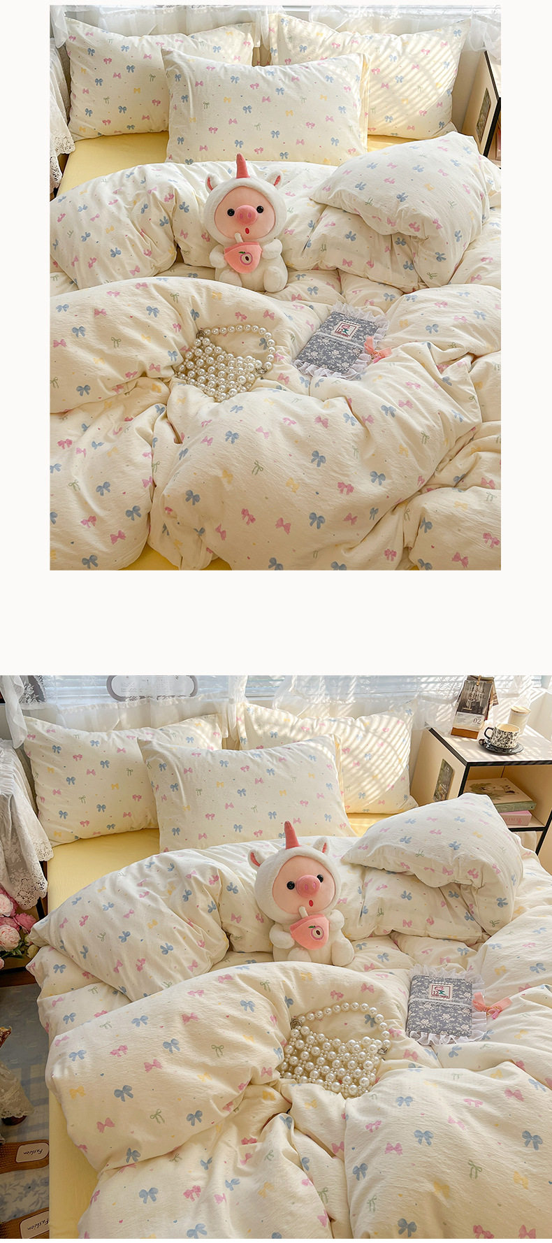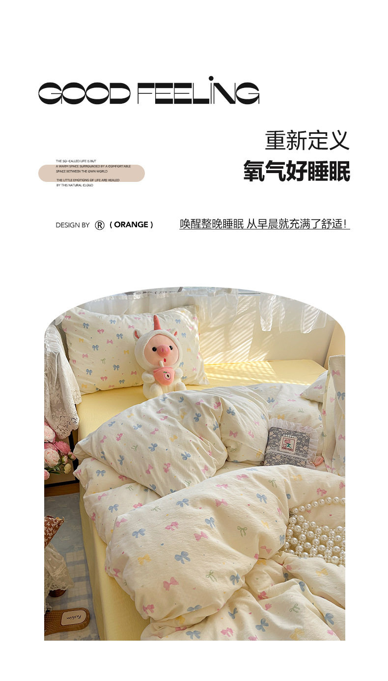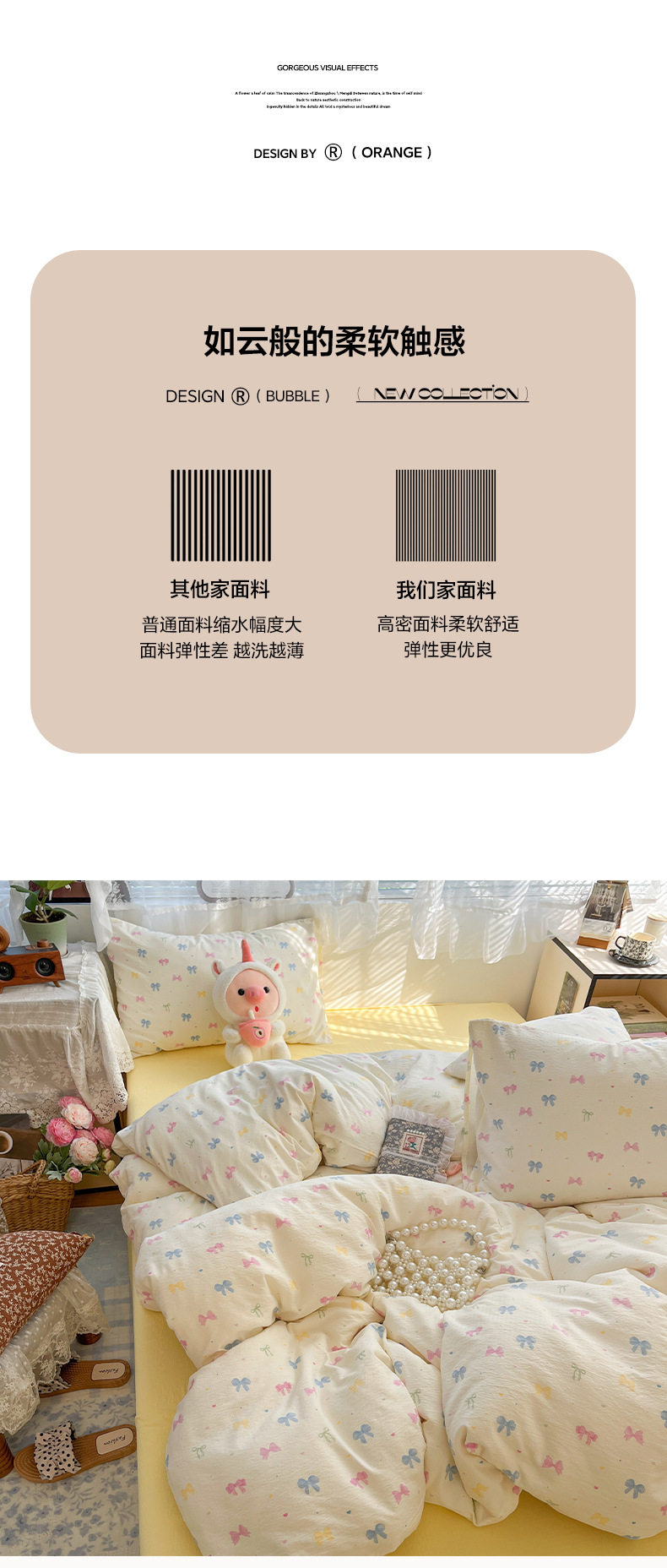 Class a Pure Cotton Maternal and Infant Grade Double-Layer Yarn Four-Piece Set Ins Cotton Naked Sleeping Bed Sheetss Quilt Cover Dormitory Three-Piece Set