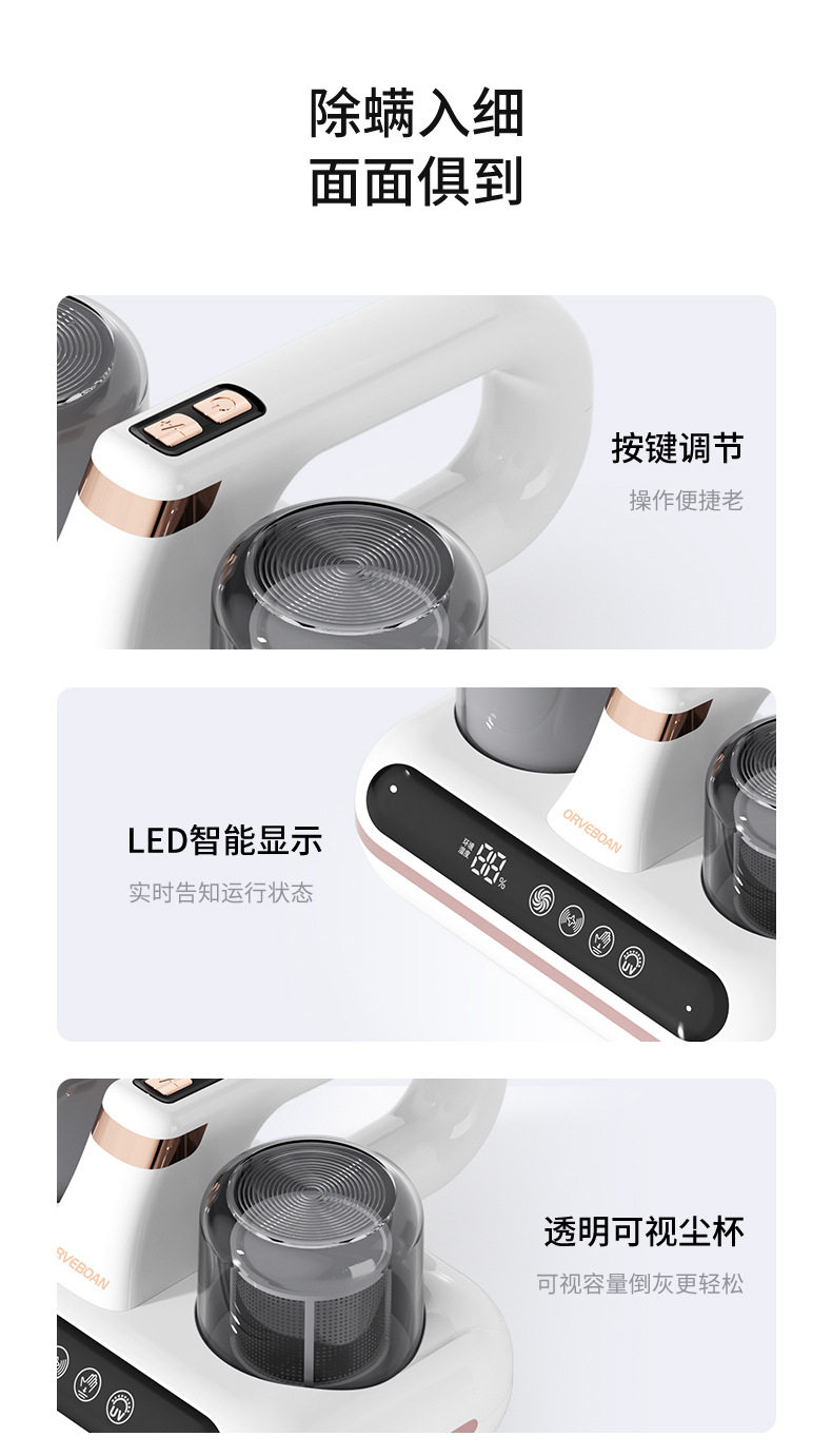 Wireless Mite Remover, Roller Brush, Mite Remover, Uv Bed, Large Suction Household Vacuum Cleaner, Sterilization and Mite Removal
