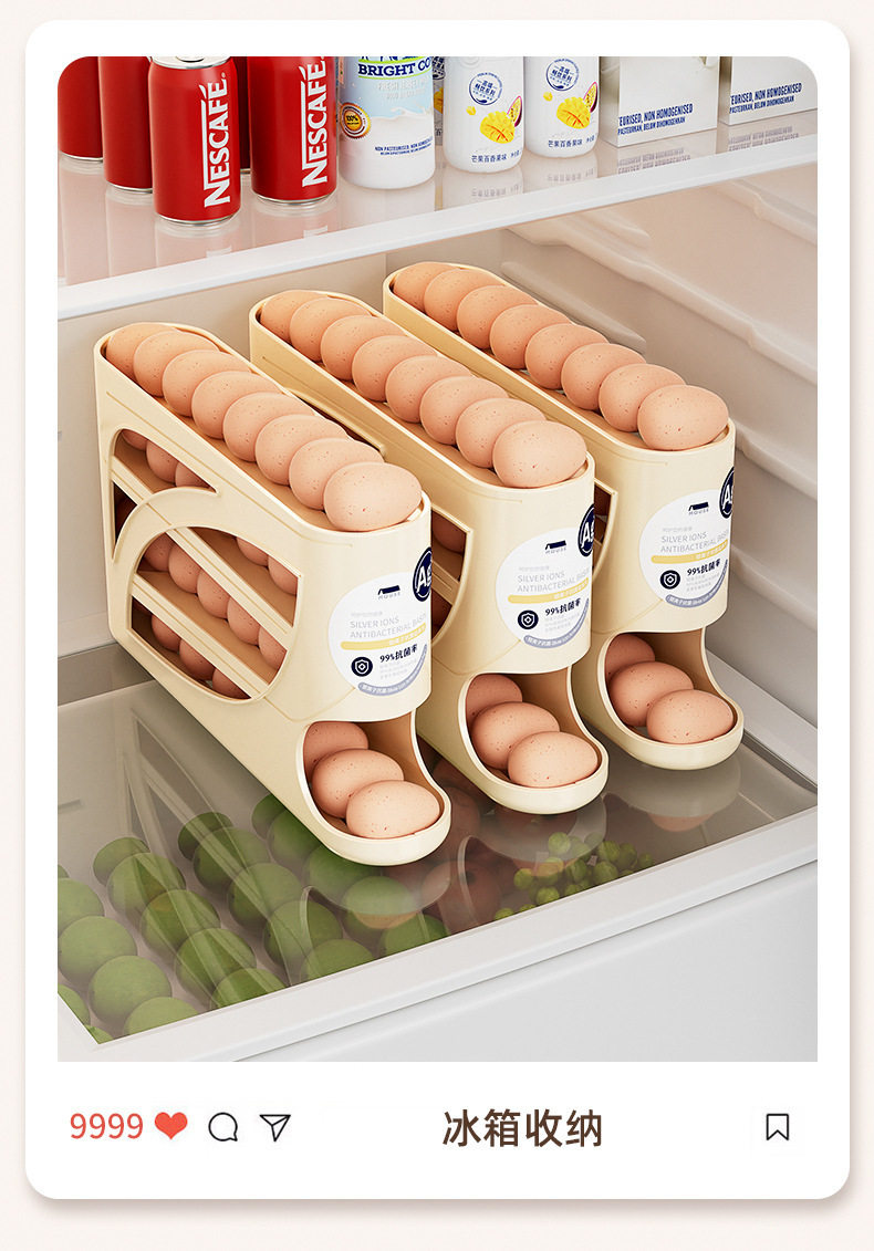 Rolling Egg Storage Box Household Multi-Layer Inclined Automatic Egg Rolling Box Refrigerator Side Door Organizer Box Egg Holder