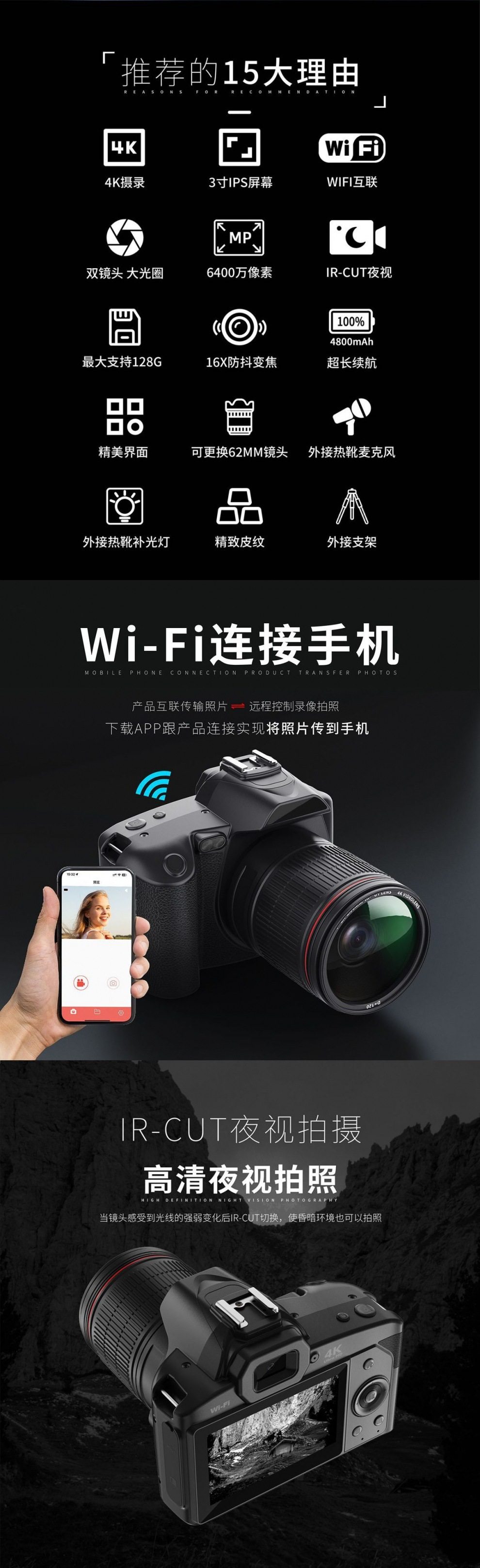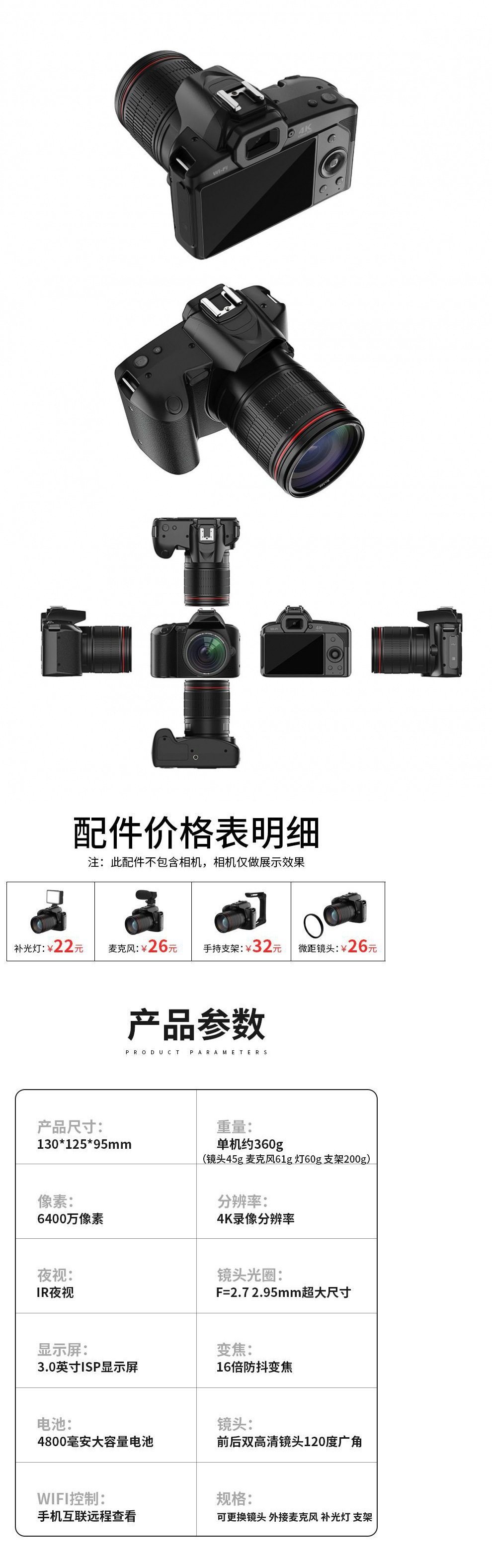 | Body color | Black standard + lens + zengpin - official standard,Black standard + lens + zengpin-package 1,Black standard + lens + zengpin-package 2,Black standard + lens + zengpin - package three,Black standard + lens + zengpin - package four,Black standard + lens + zengpin - package five,Black standard + light + lens + microphone + bracket - official standard,Black standard + light + lens + microphone + bracket - package 1,Black standard + light + lens + microphone + bracket - package 2,Black standard + light + lens + microphone + bracket - package three,Black standard + light + lens + microphone + bracket - package four,Black standard + light + lens + microphone + bracket - package five |
