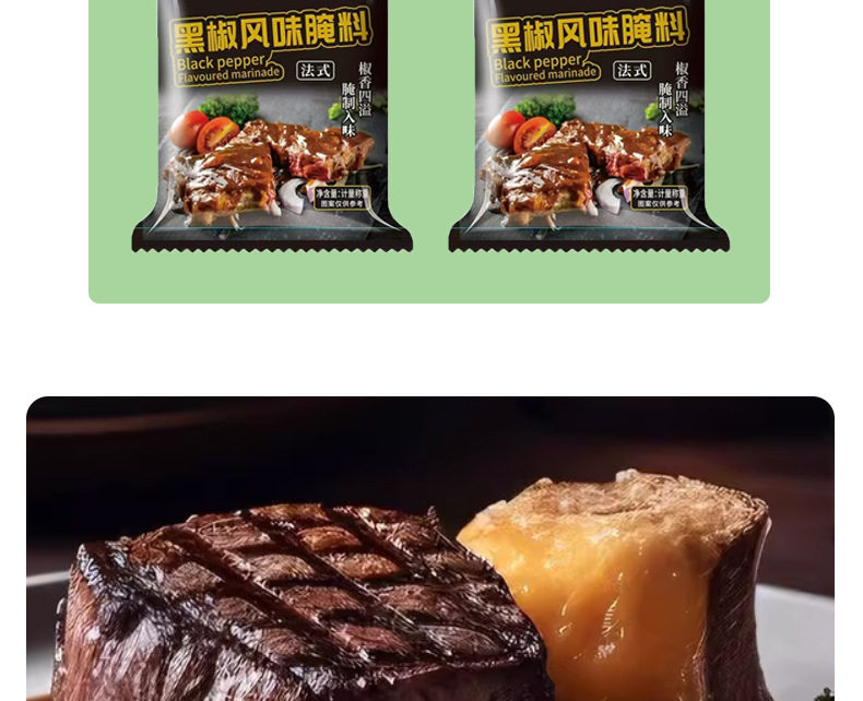 | Specifications | Black pepper flavor marinade 30g/bag |
