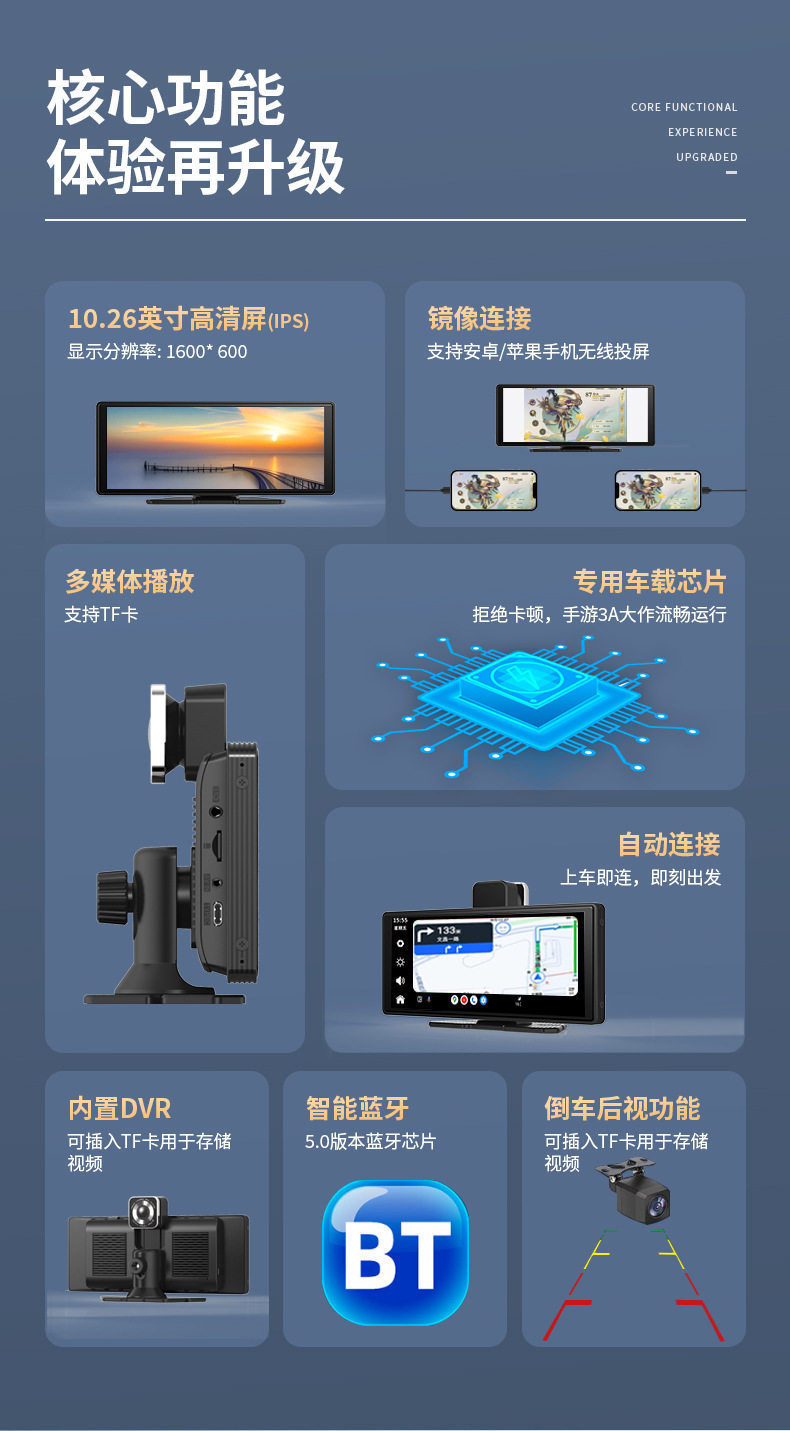 | Color classification | [screen projection model without recorder],[screen projection model + reversing camera],[front and rear dual-recording recorder + reversing],Android 14.0 front and rear 1080p4g network |