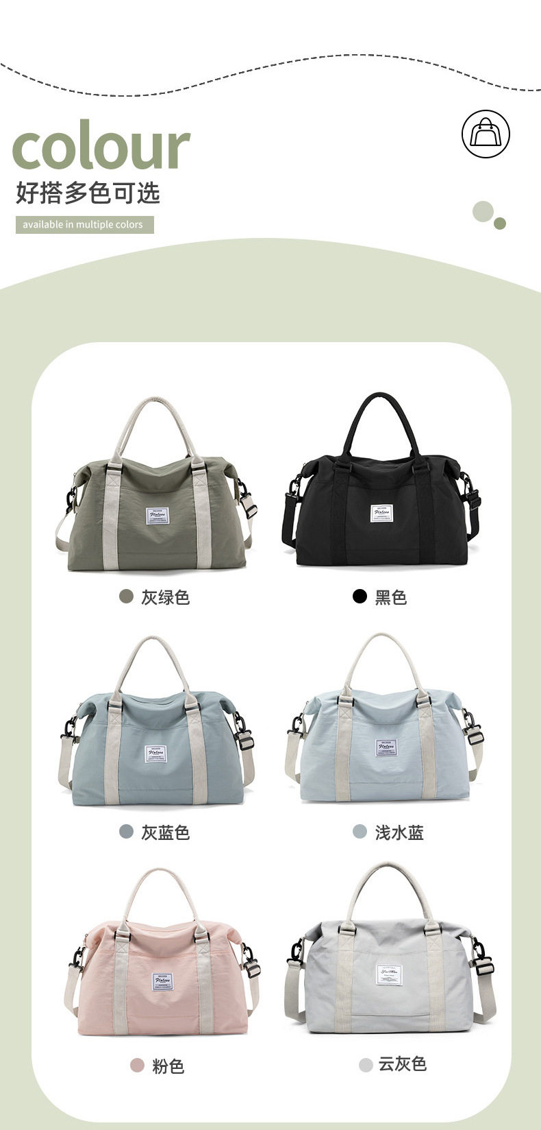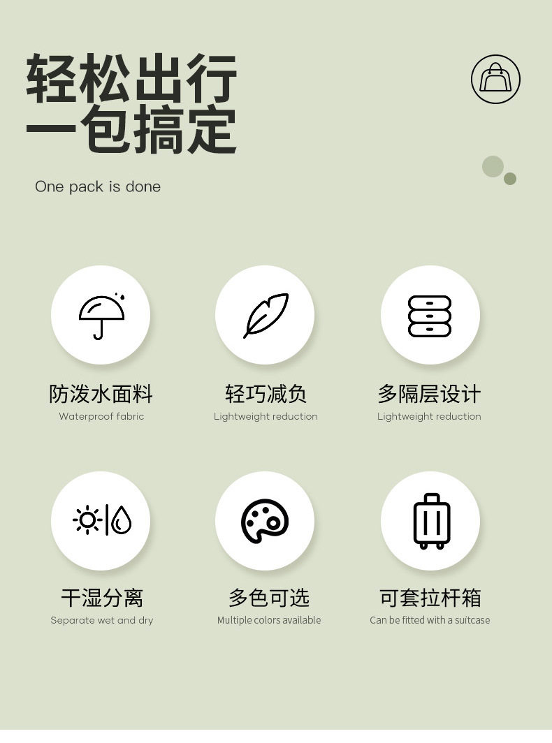 | Color | Black large dry and wet separation,Milk powder large size dry and wet separation,Green large dry and wet separation,Light aqua blue large dry and wet separation,Rice gray grid large dry and wet separation,Deep water blue large dry and wet separation,Light blue medium dry wet separated strapless,Deep teal medium dry-wet separated strapless bag,Milk powder medium size dry and wet separation strapless,Green medium-sized wet & dry separated strapless bag,Medium-sized, off-white checkered, dry-wet separation, strapless,Black, medium-sized, wet & dry separated, strapless bag |