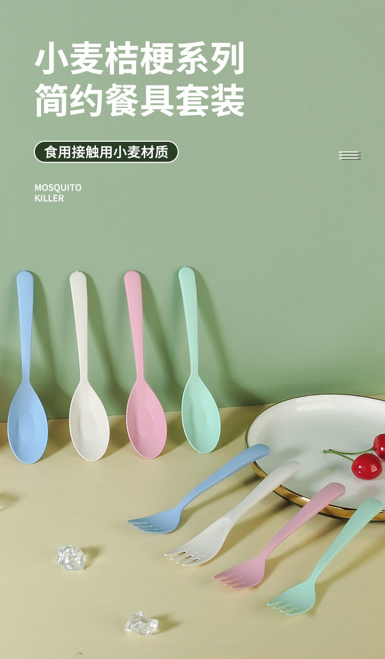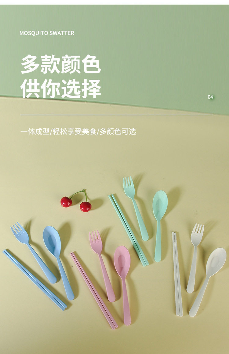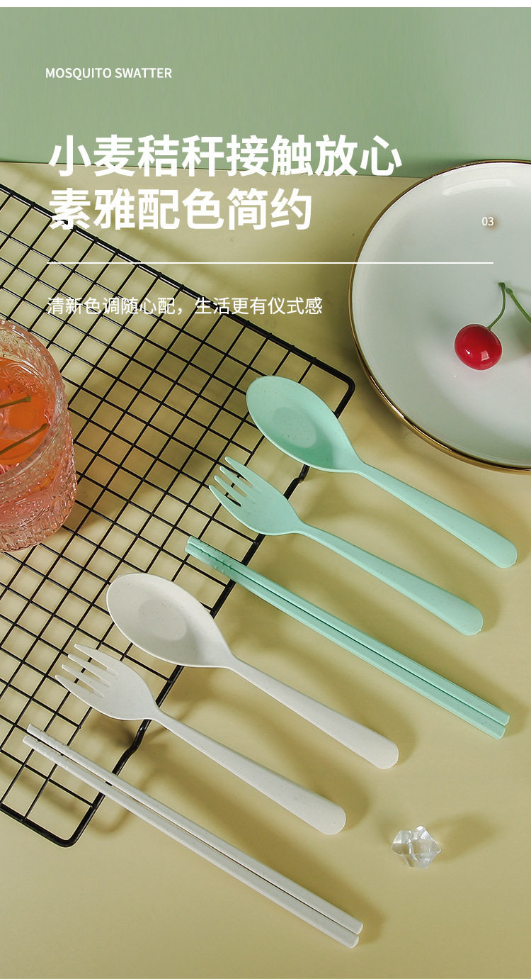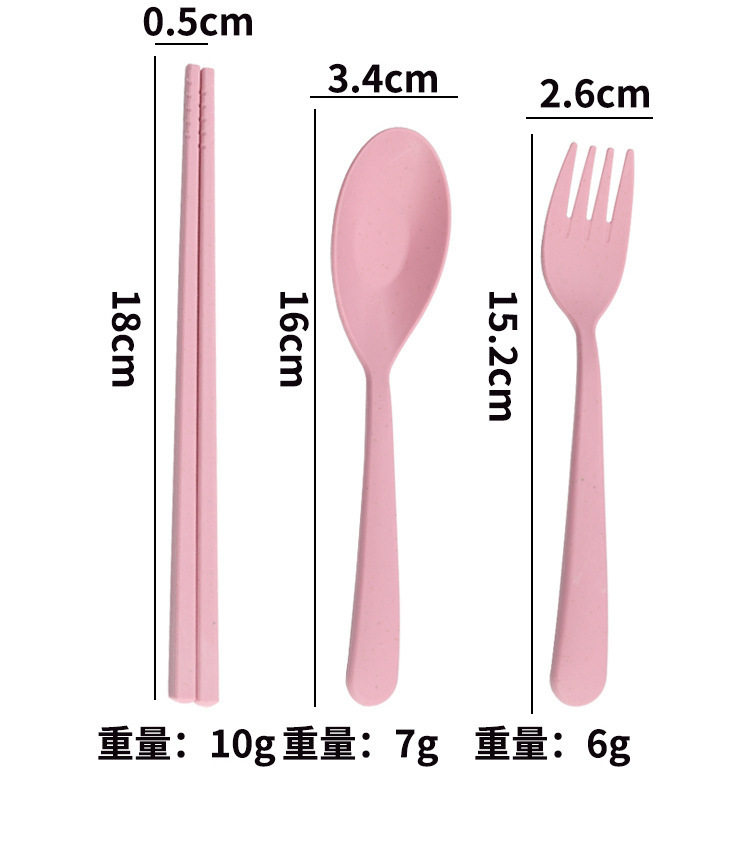 Student Outdoor Portable Three-Piece Wheat Tableware Children's Tableware Fork Spoon Chopsticks Portable Tableware Set Gift