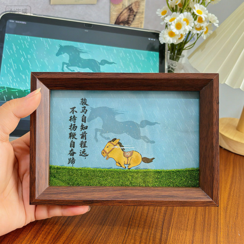 The Horse Knows That the Future Is Far Away. Desktop Photo Frame Ornaments, High-End Creative Birthday Gifts for Boyfriend and Father
