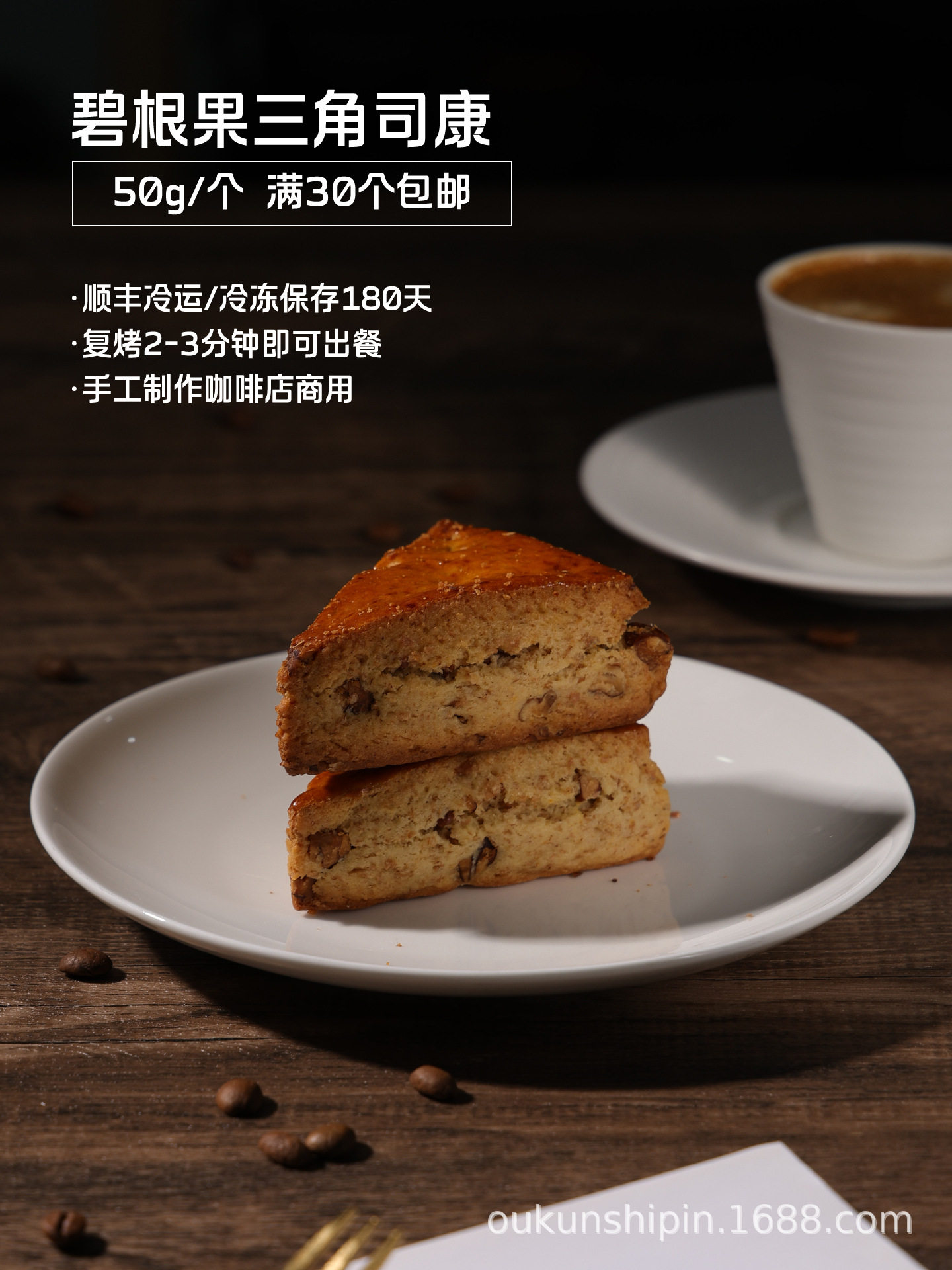 Beiting Pecan Triangle Scone Bread Commercial Coffee Shop Afternoon Tea Break Frozen Baked Semi-Finished Products Full Box