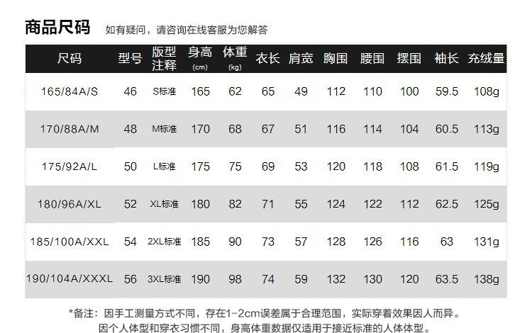 | Size | 165/84a,170/88a,175/92a,180/96a,185/100a,190/104a |