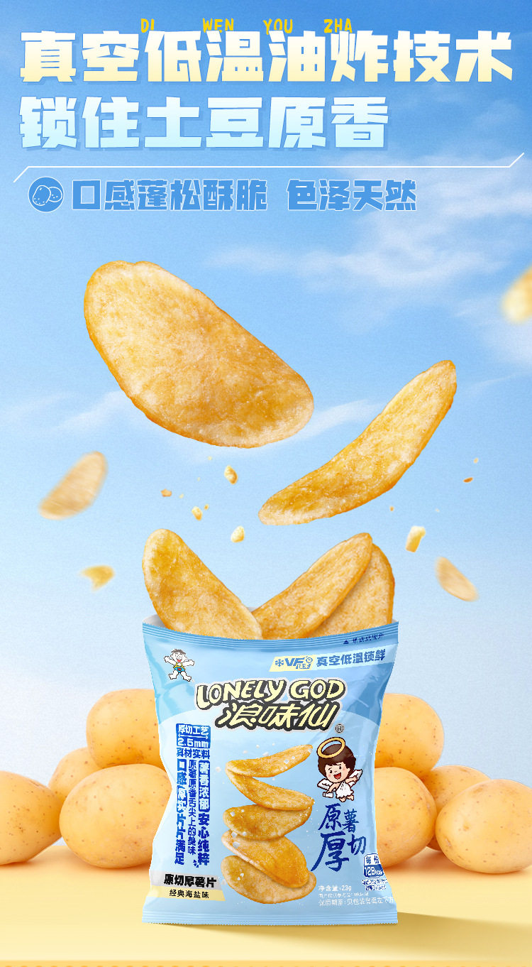 | Packaging specifications | Sea salt flavored potato chips 23g*5 pack,Sea salt flavored potato chips 23g*10 packs,Sea salt flavored potato chips 23g*24 packs |