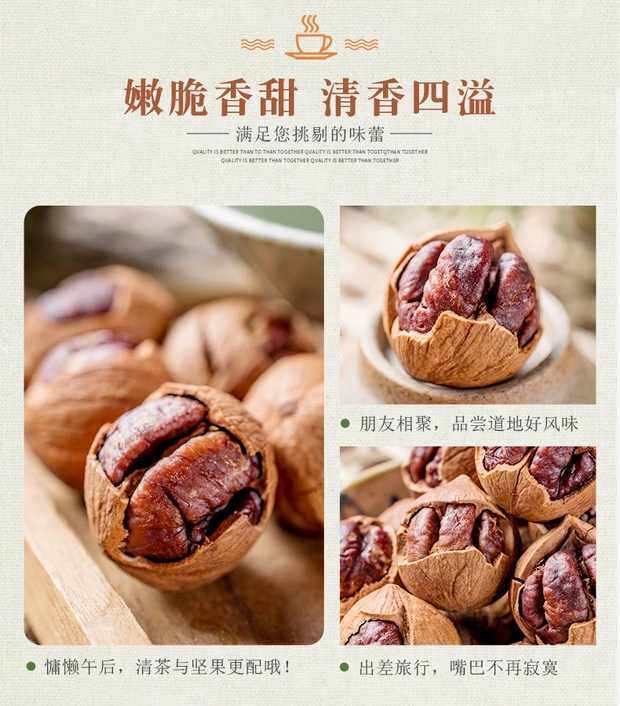 | Taste | Salt and pepper flavor,Cream flavor,Boiled and charcoal grilled flavor,New arrival pecan kernels (original flavor) |