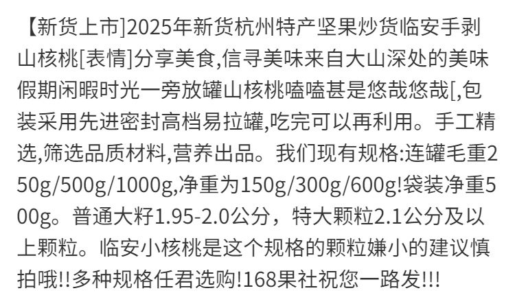 New Arrivals 25 New Arrivals Hangzhou Specialty Roasted Nuts Lin'An Hand-Peeled Pecans Canned 150G/250G Factory