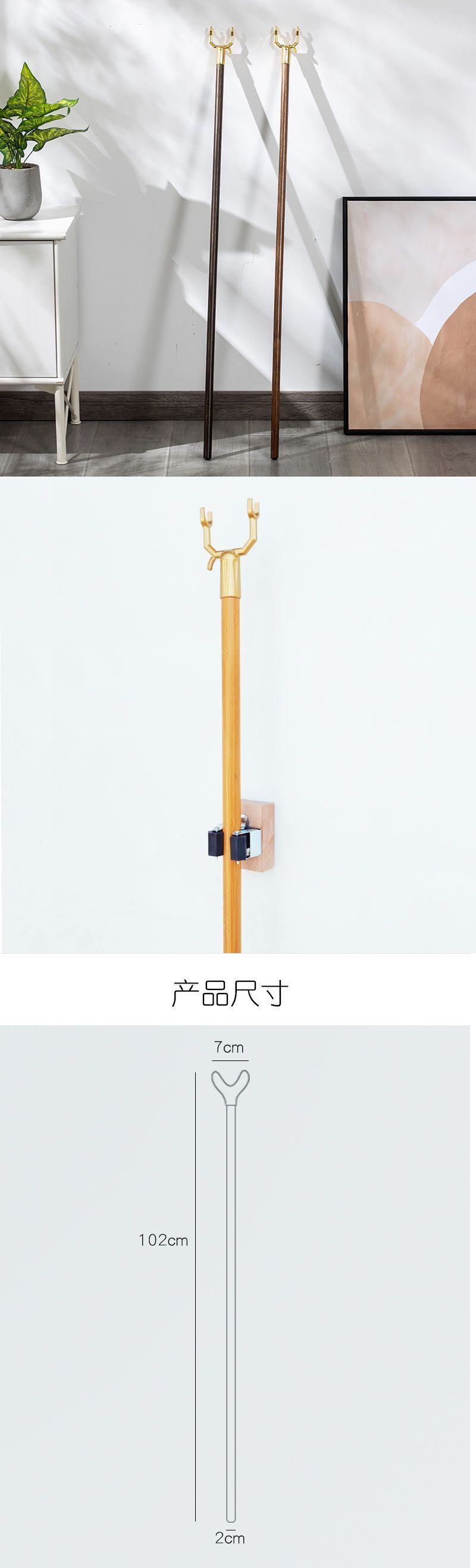 Solid Wood Walnut Color Universal Clothes Drying Rod Vintage Clothes Hanger Clothes Rack Clothes Drying Rod Clothes Fork Balcony
