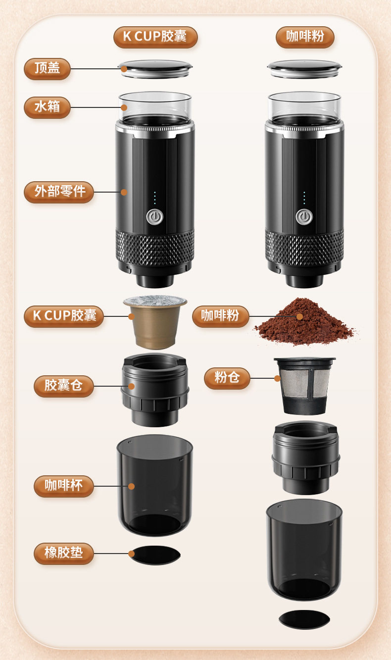 Portable Wireless Electric Coffee Machine Pocket Kcup Capsule Coffee Machine 2-in-1 Outdoor Car Home Portable