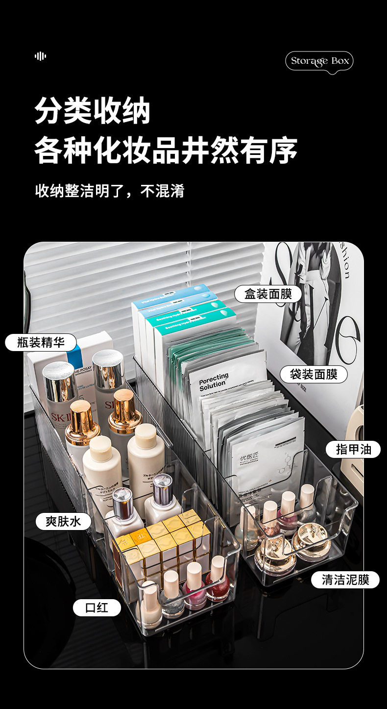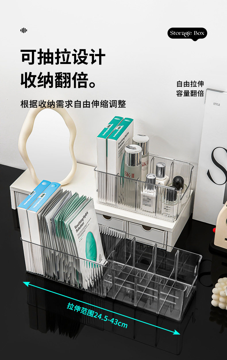 Facial Mask Storage Box Retractable Dressing Table Skin Care Deep Drawer Partition Storage Desktop Makeup Storage