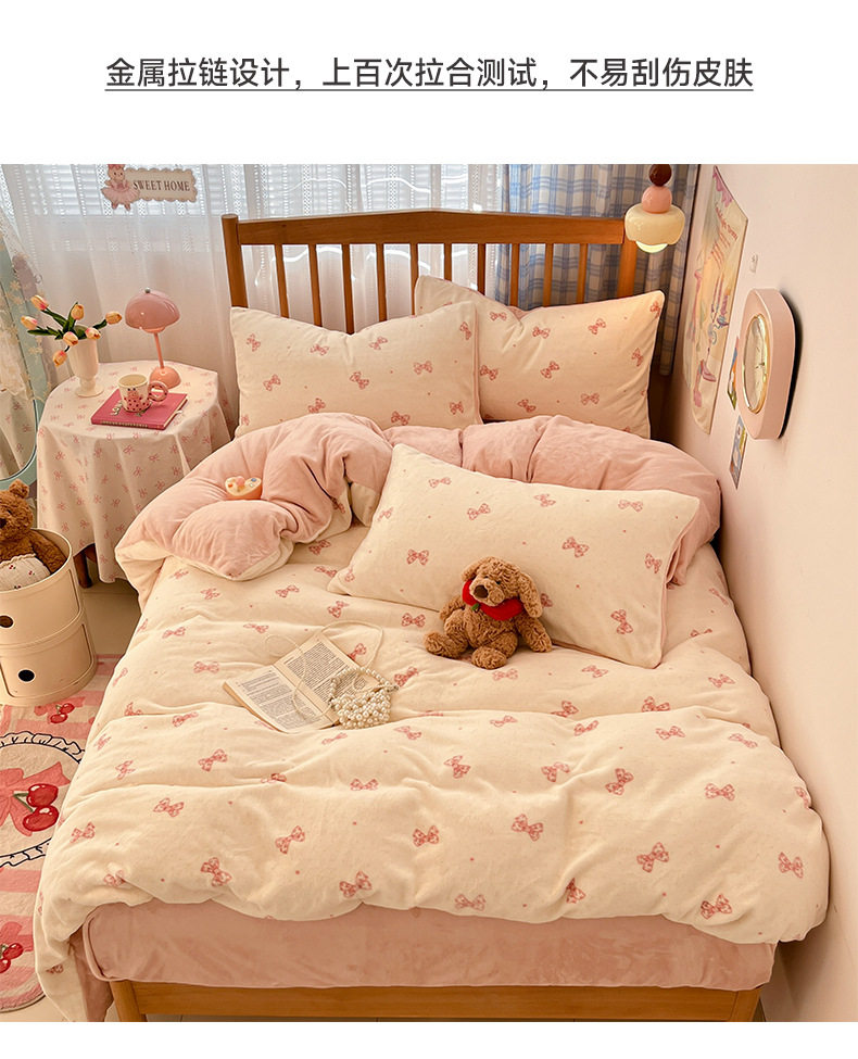 Winter Thickened Milk Velvet Four-Piece Set with Fleece Double-Sided Flannel Duvet Cover and Fleece Bed Sheet Dormitory Three-Piece Set Wholesale