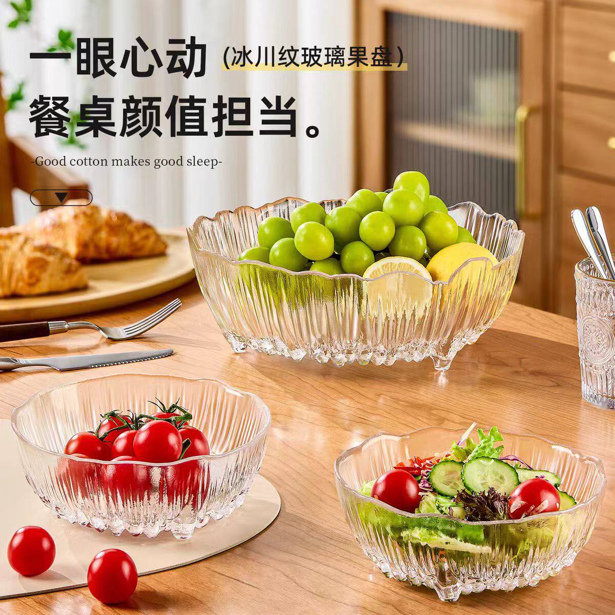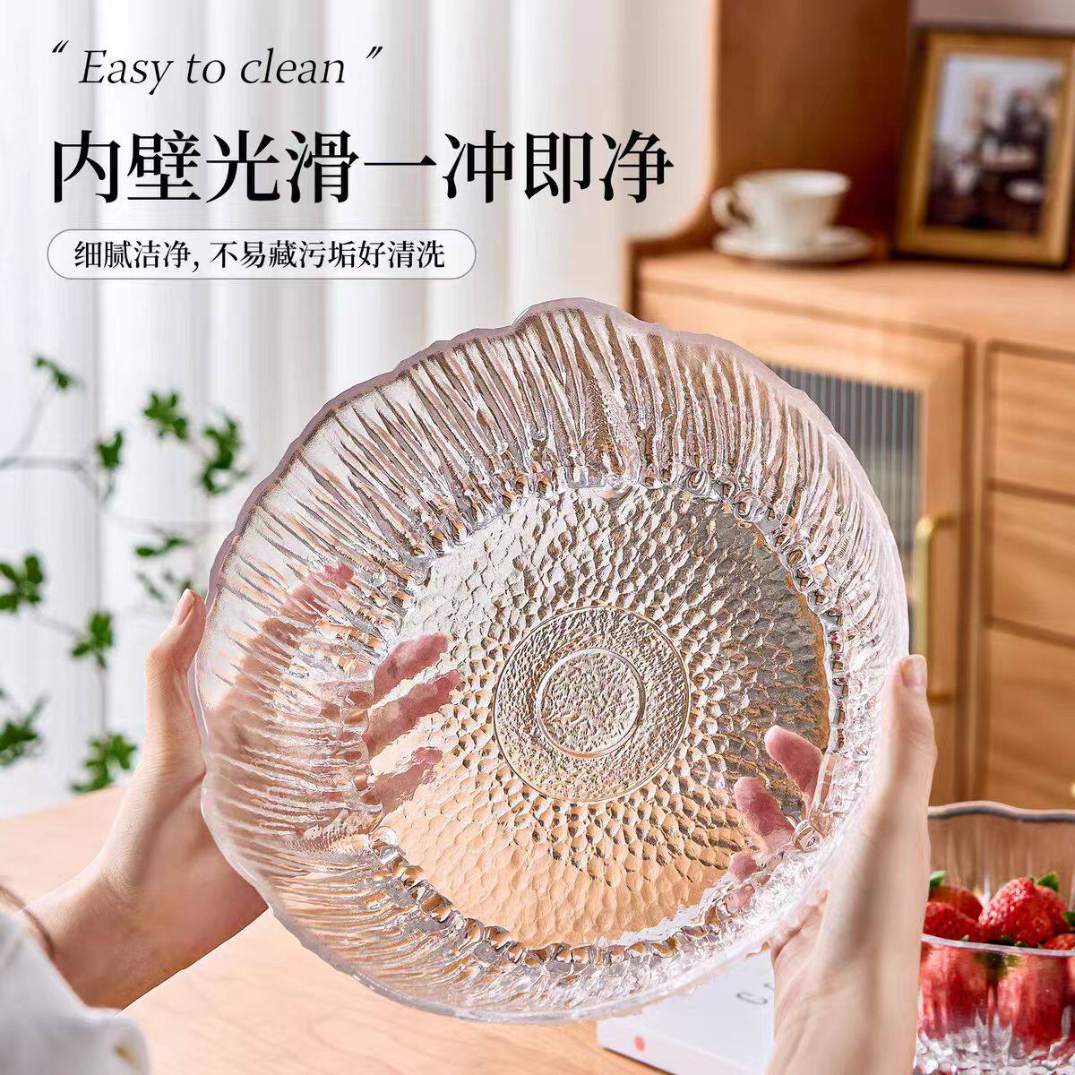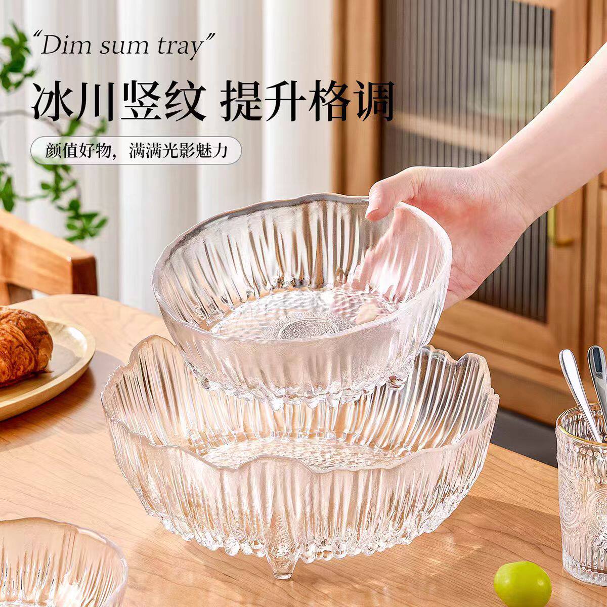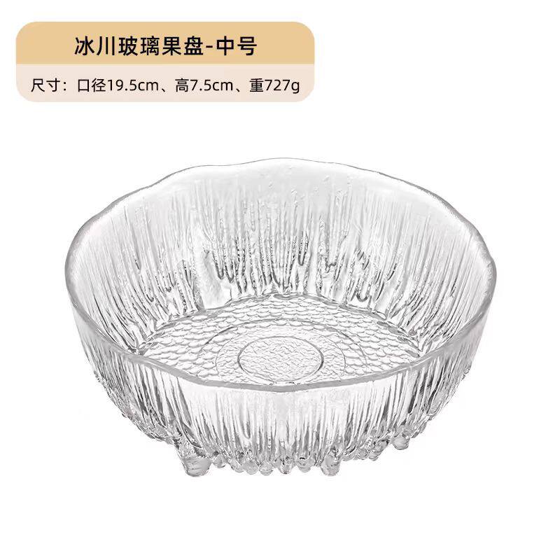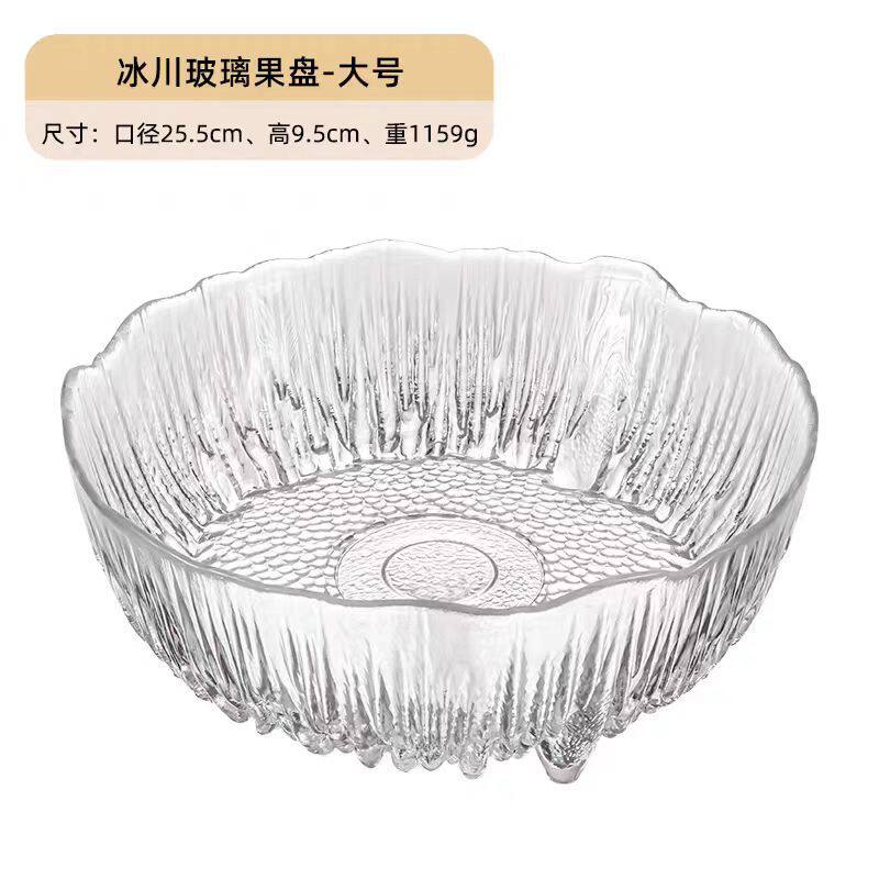 Japanese-Style Glass Glacier Fruit Plate for Home Living Room Light Luxury Snack Basket Display Fruit Plate Salad Bowl Set