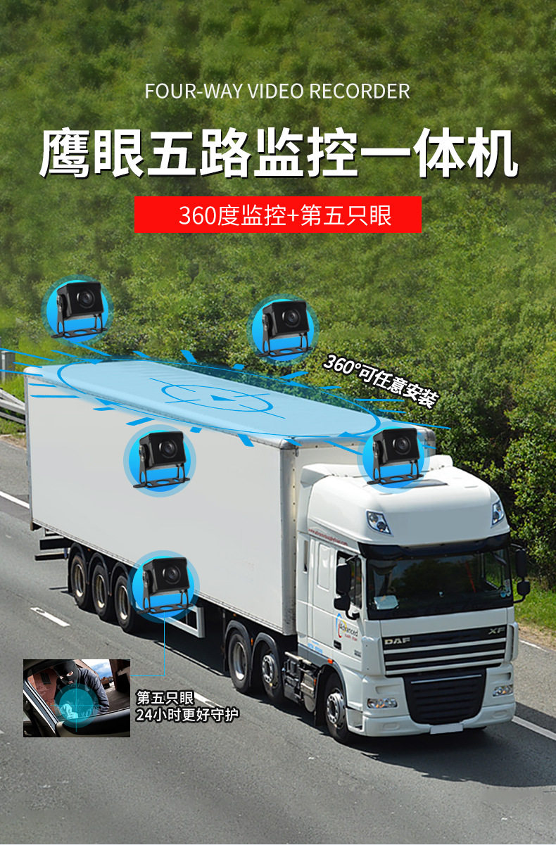 Truck Driving Recorder Four-Way Monitoring 24V High-Definition Night Vision Reversing Image All-In-One Harvester 12V Universal