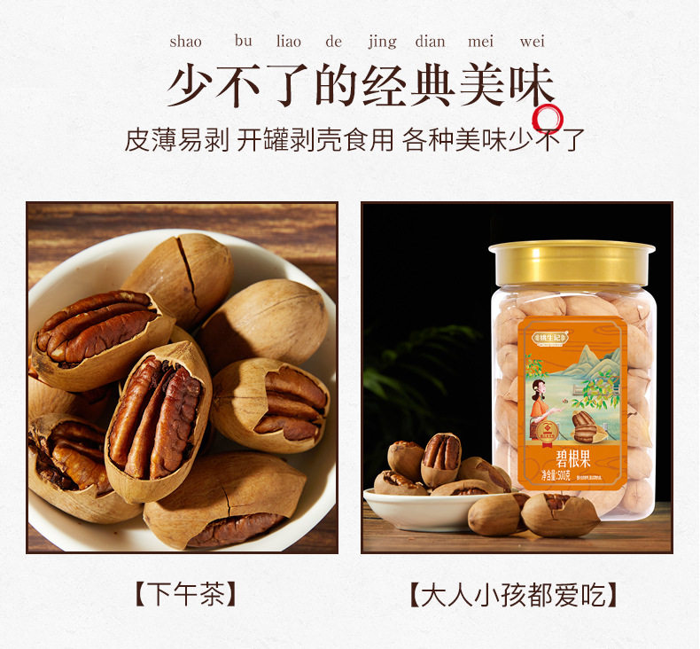 Yao Sheng Ji 500g Pecan Large Granules Delicious Nuts Easy-To-Peel Snack Crispy Roasted Nuts Leisure Snack