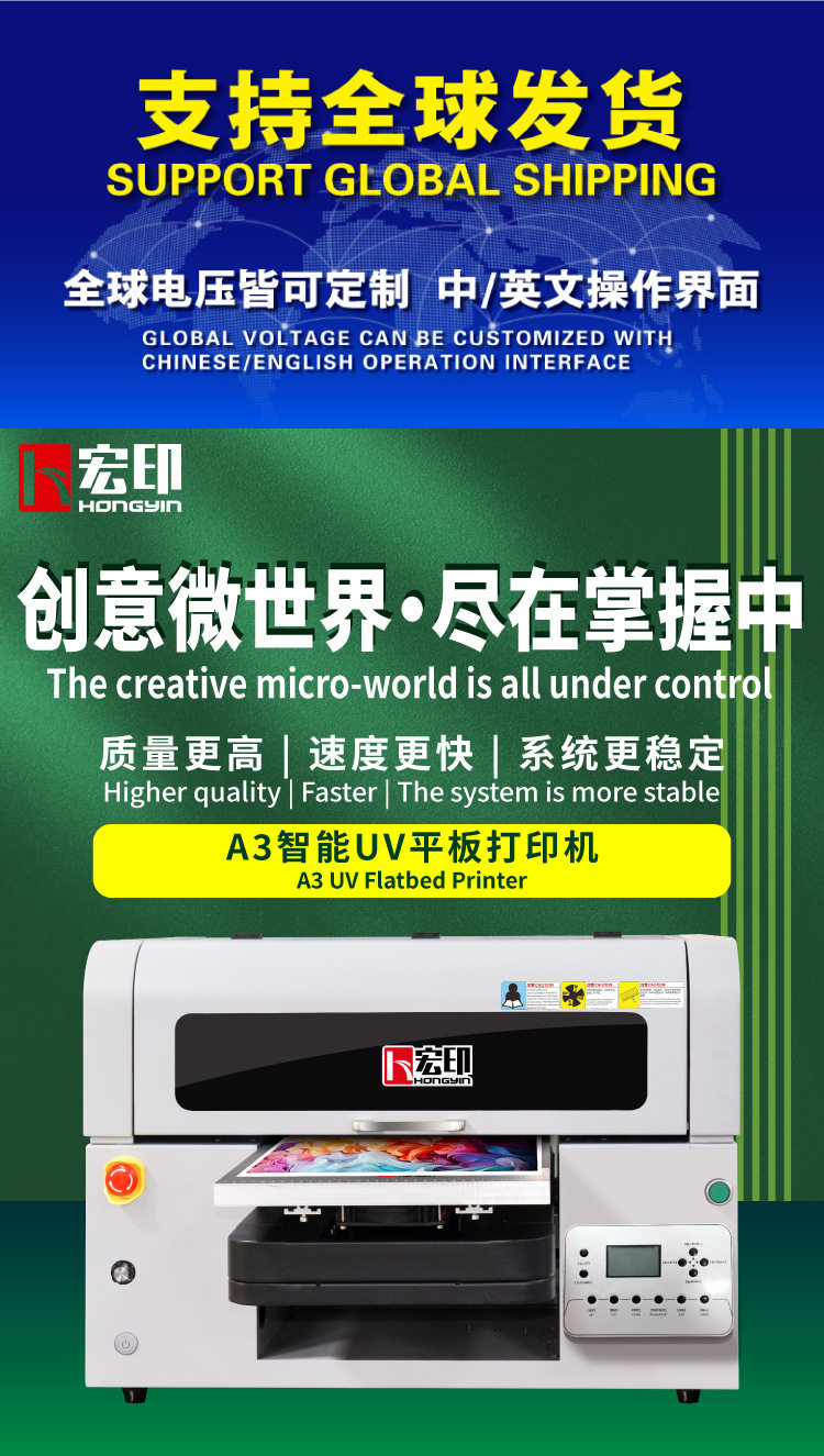 Hongyin Hy-A3L High-Precision A3Uv Flatbed Printer Mobile Phone Case Logo Sign Personalized Manicure