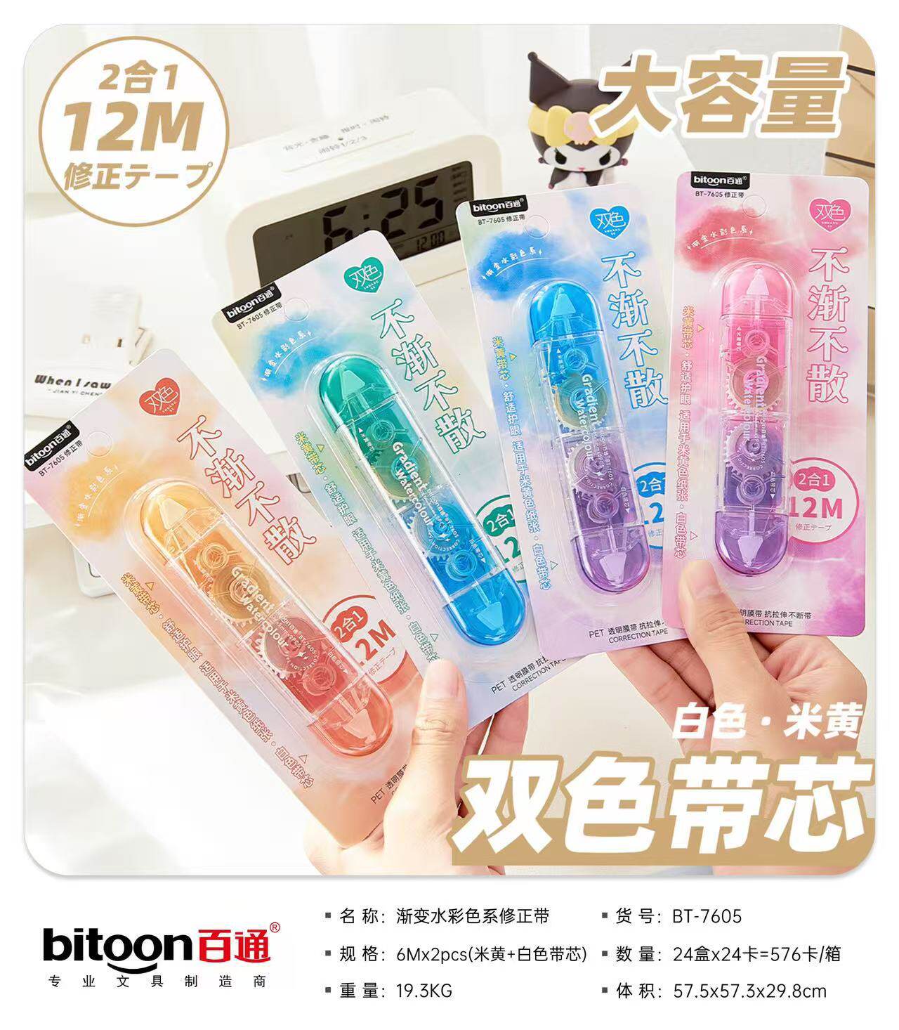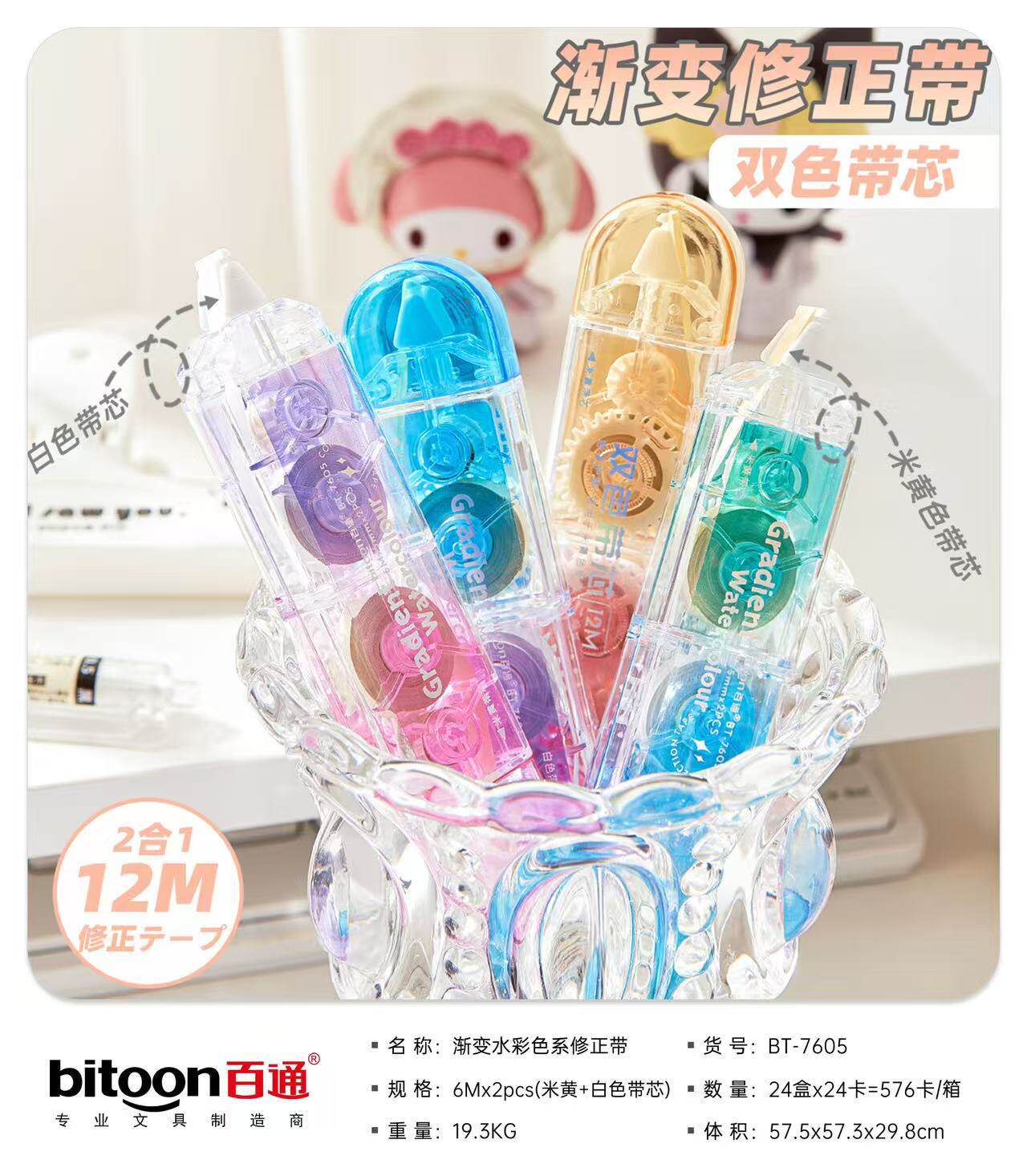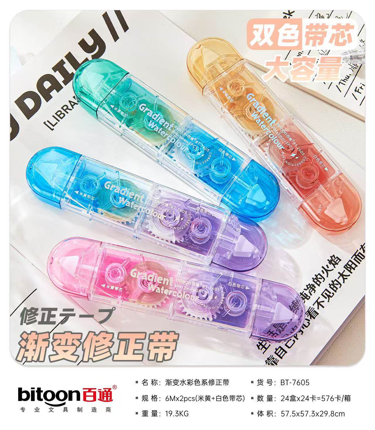 7605 Gradient Color Double-Ended Correction Tape Fluorescent Tape 2-in-1 Correction Tape Student-Specific Color Marking Tape Correction Tape