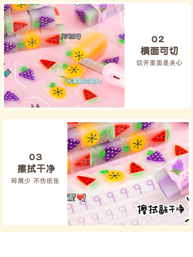 Creative Sandwich Eraser for Primary School Students, Transparent and Light Fragrance, Special Cute Jelly, Random Cut Shape Pencil Eraser t
