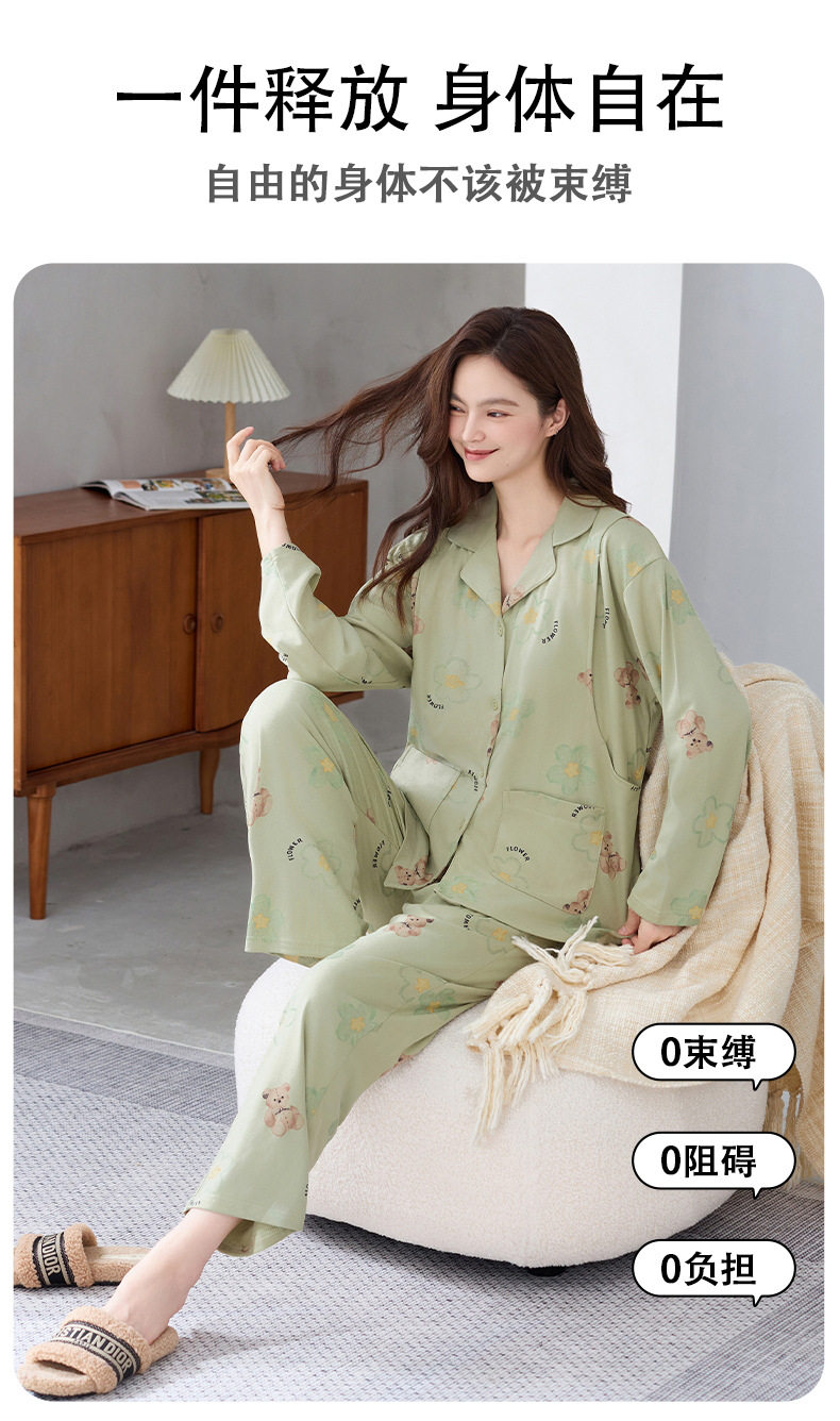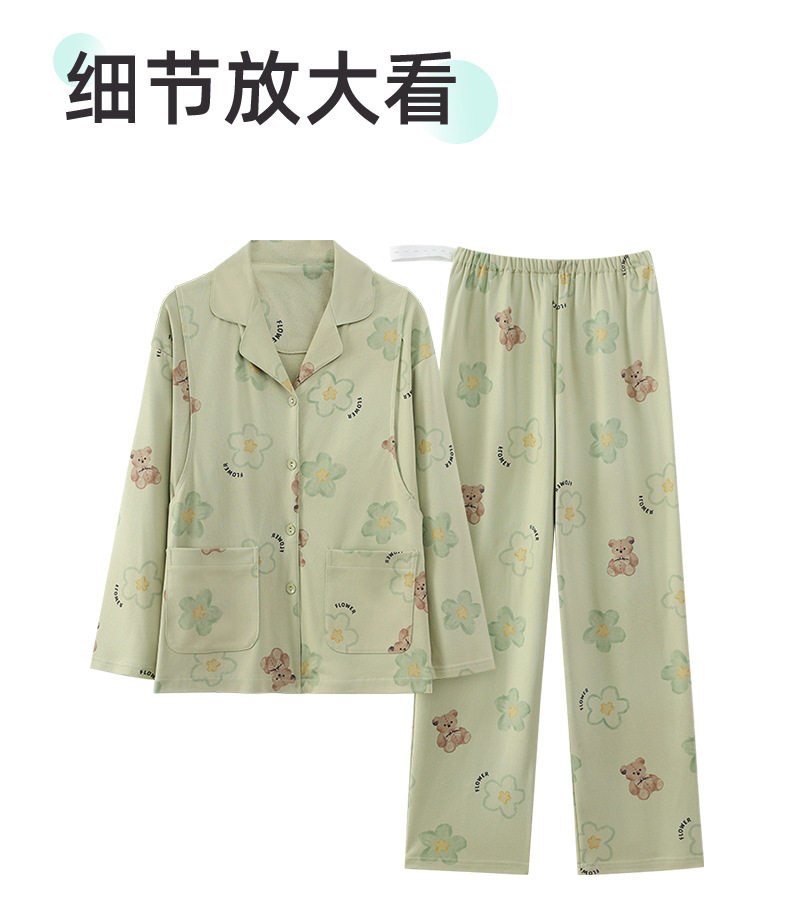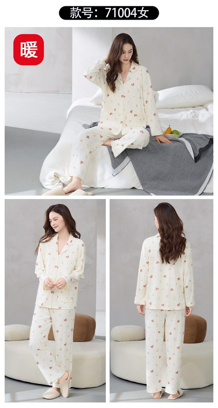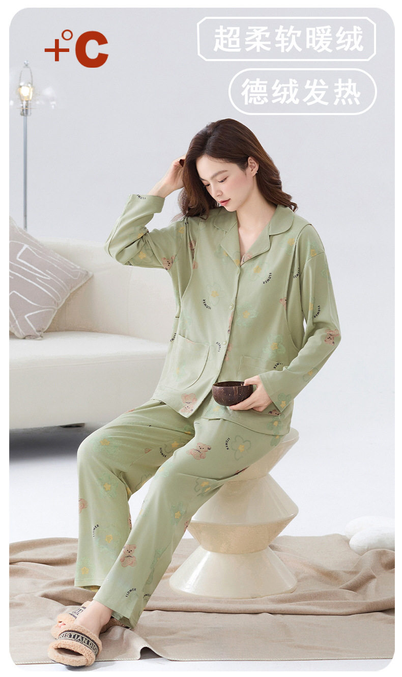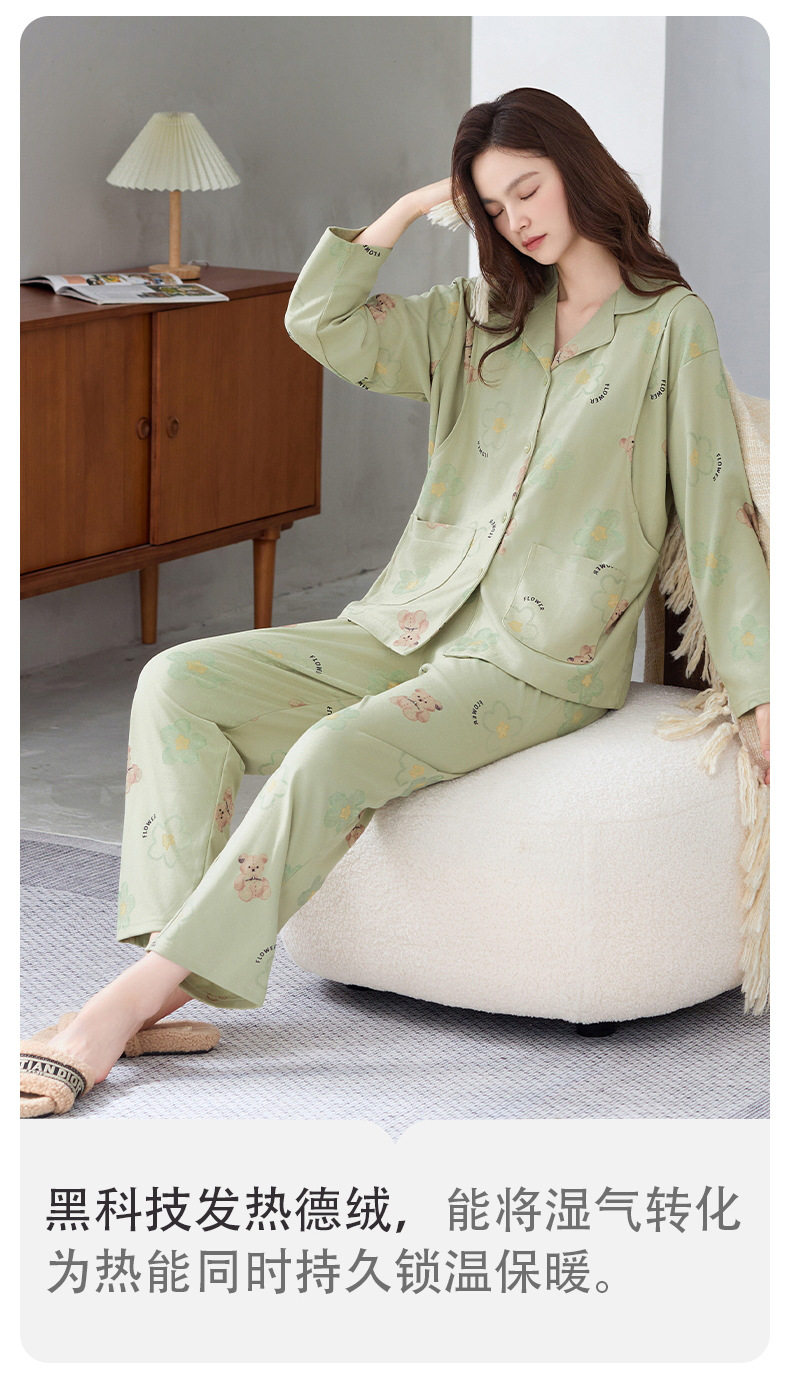 Winter Warm Thermal De Rong Long-Sleeve Maternity Pajamas for Nursing Mothers, Postpartum Loungewear Set for Winter