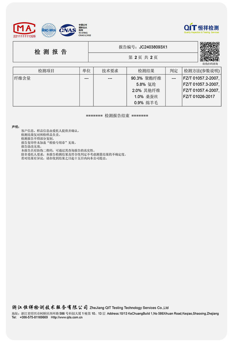 | Main fabric composition content | 90% (inclusive)-95% (exclusive) |