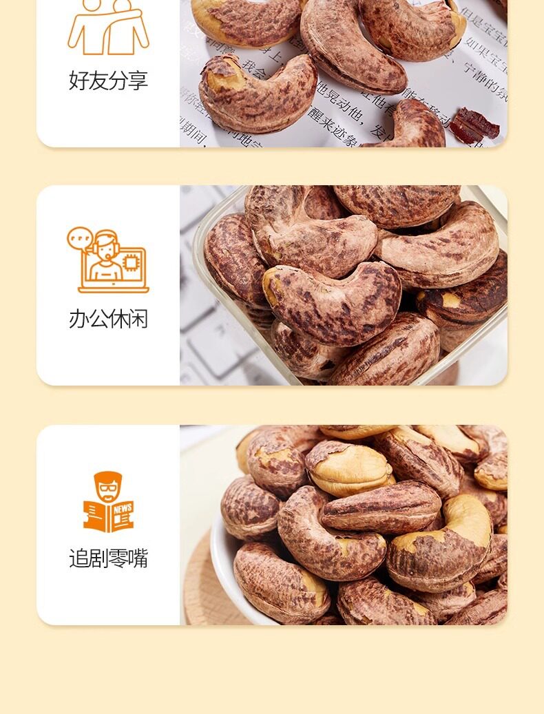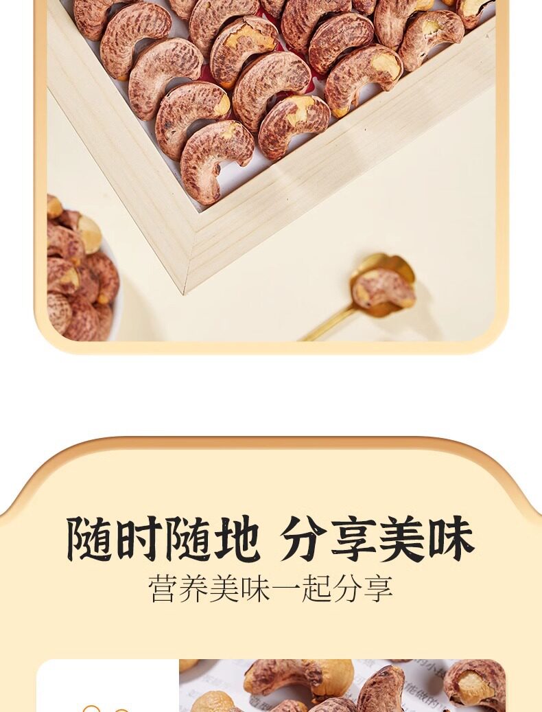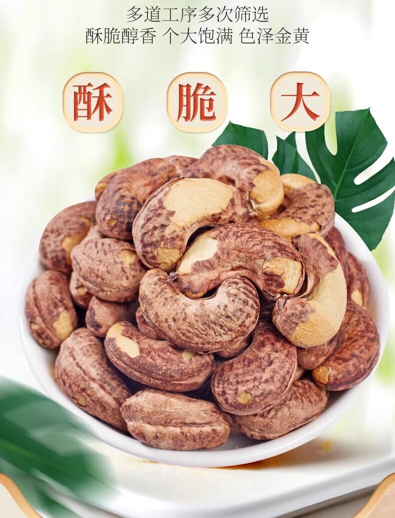 | Taste | [trial] cashew nuts with skin 100g,Cashew nuts with skin 100g*2 bags,Cashew nuts with skin 100g*3 bags,Cashew nuts with skin 250g*1 bag,Cashew nuts with skin 250g*2 bags,Cashew nuts with skin 250g*3 bags,Cashew nuts with skin 250g*4 bags,Cashew nuts with skin 500g*1 bag,Cashew nuts with skin 500g*2 bags,Cashew nuts with skin 500g*1 can,[buy 1 get 1 free] cashew nuts with skin 500g*2 cans,Cashew nuts with skin 500g*3 cans |