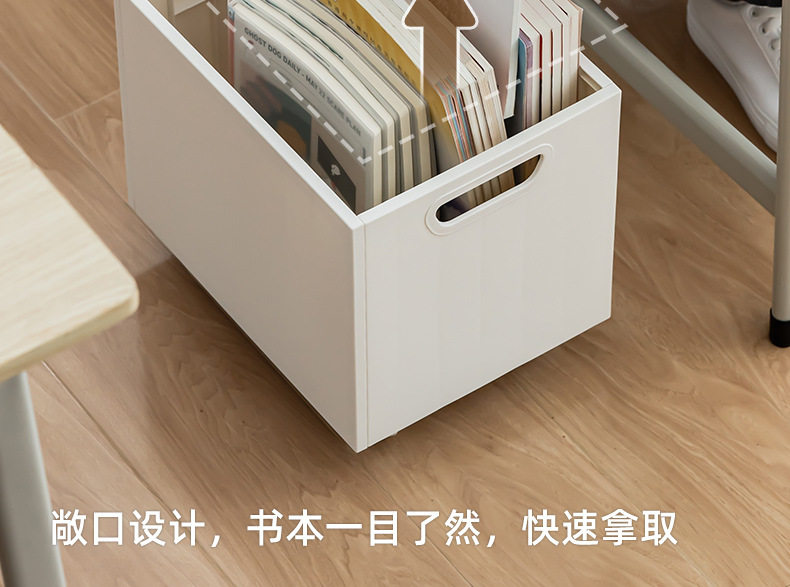 Factory Direct Sales Plastic Under-Desk Removable Bookshelf with Pulleys Simple Student Book Storage Box Wholesale