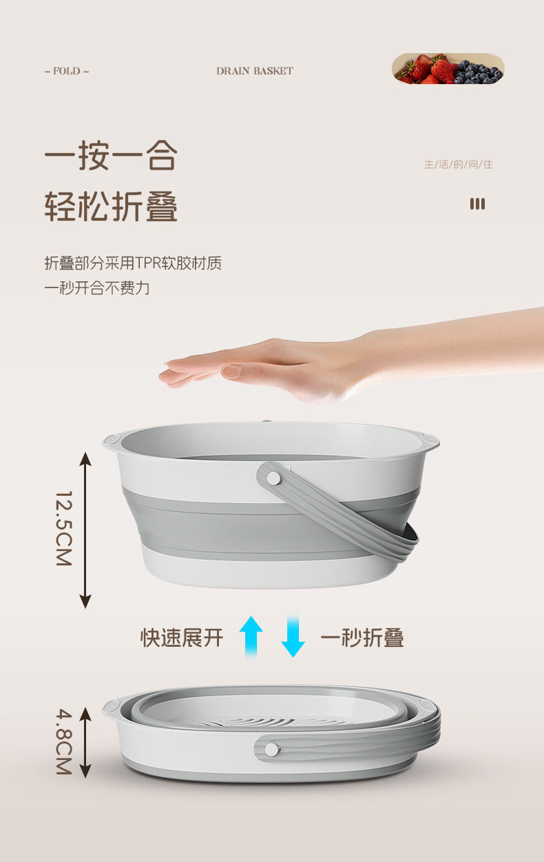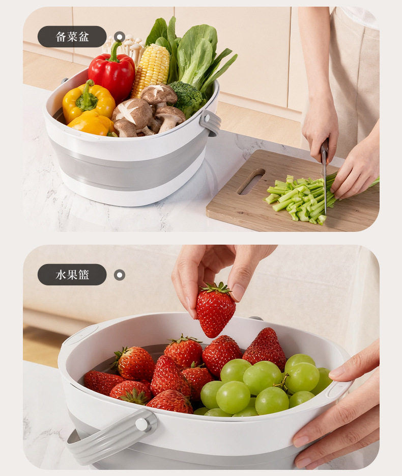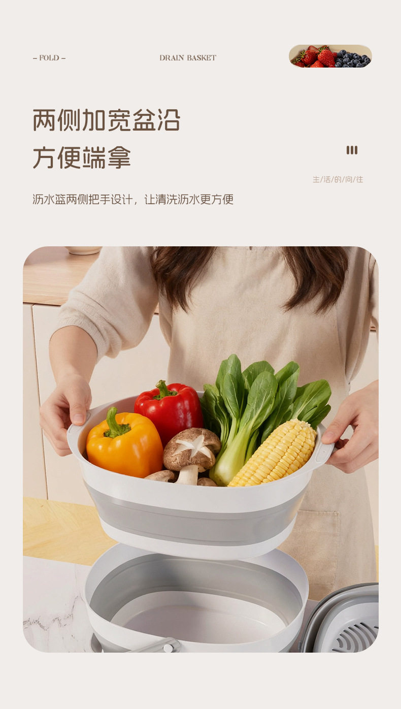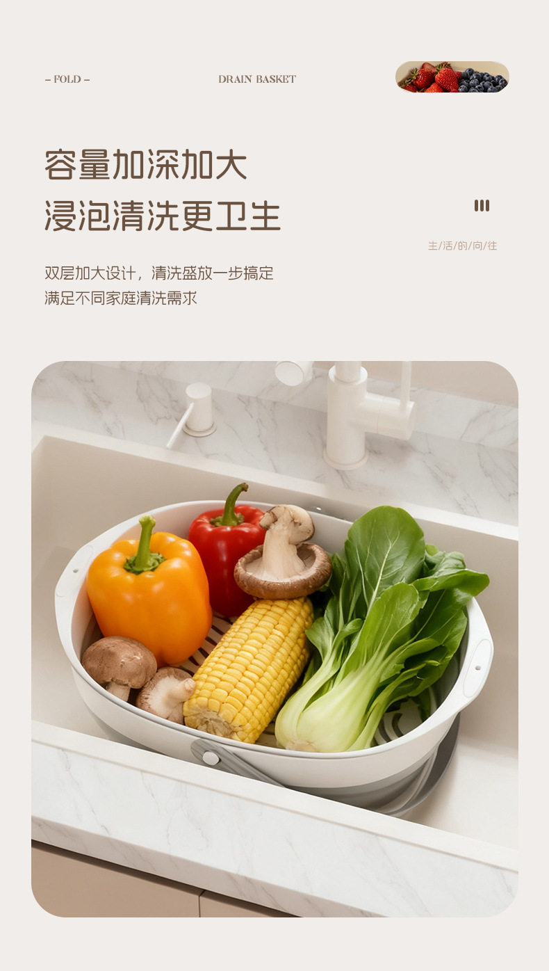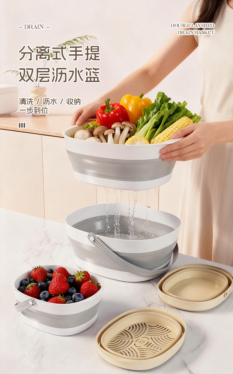 Foldable Drain Basket Vegetable Washing Basin Household Double-Layer Kitchen Drain Basket Large Vegetable and Fruit Washing Basin Drain Basket