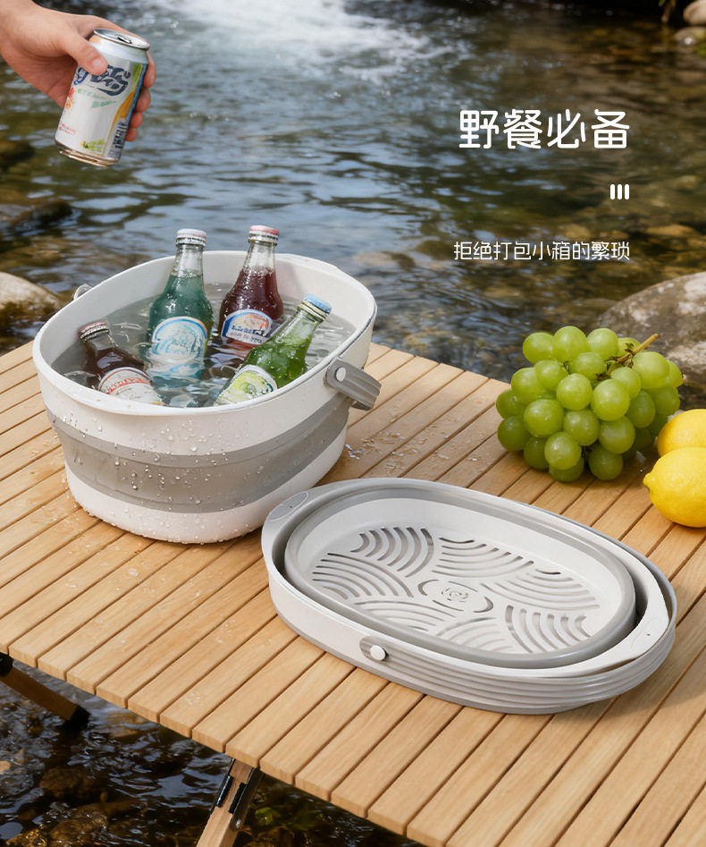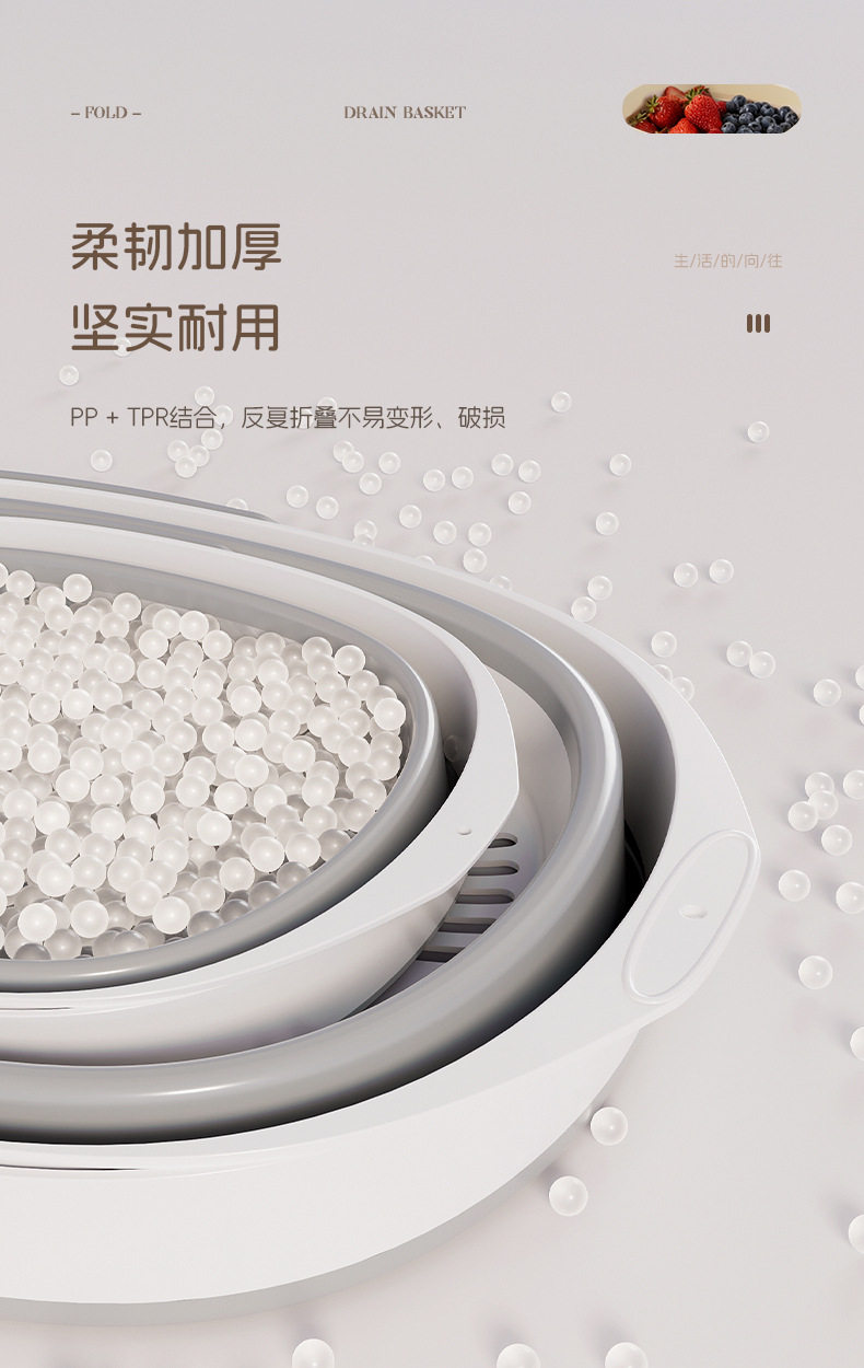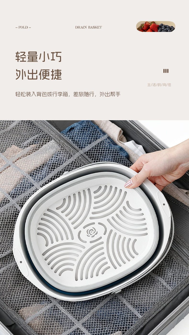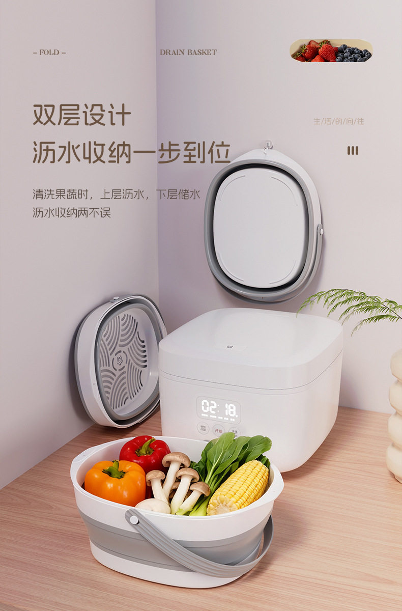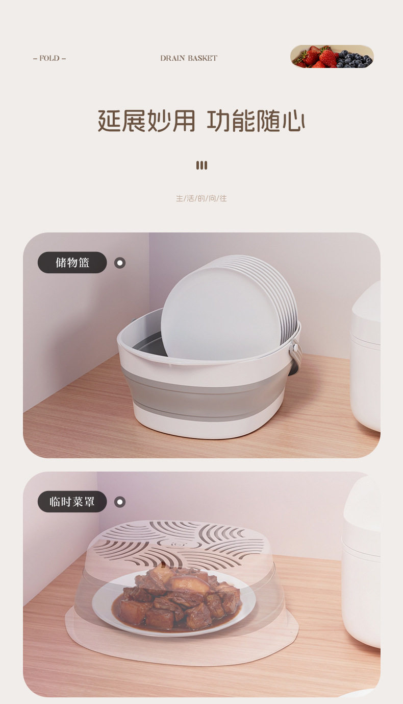 Foldable Drain Basket Vegetable Washing Basin Household Double-Layer Kitchen Drain Basket Large Vegetable and Fruit Washing Basin Drain Basket