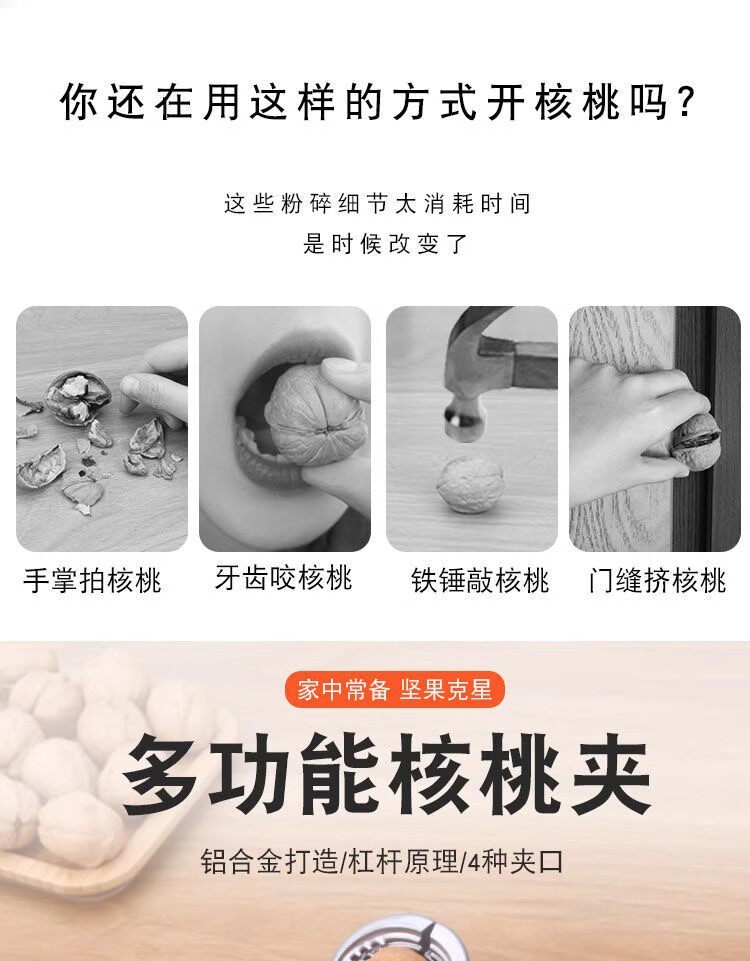 | Specifications | Newly upgraded [4-in-1] walnut sandwich orange (free walnut needle),Multifunctional [double port] walnut clip silver - 1 piece (free walnut needle),Ordinary walnut clip thickened 1 piece |