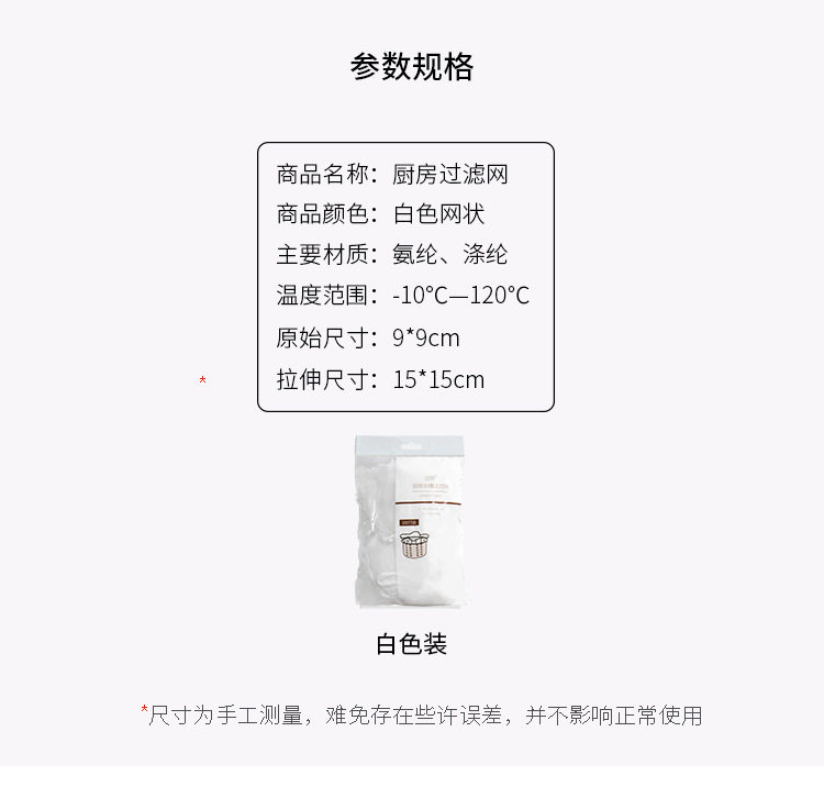 | Specifications | Fine mesh belt with drawstring (pack of 100 pieces) |