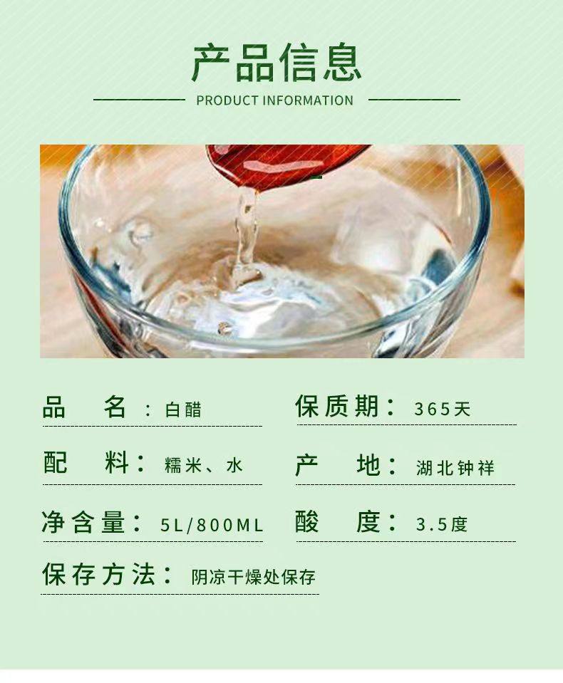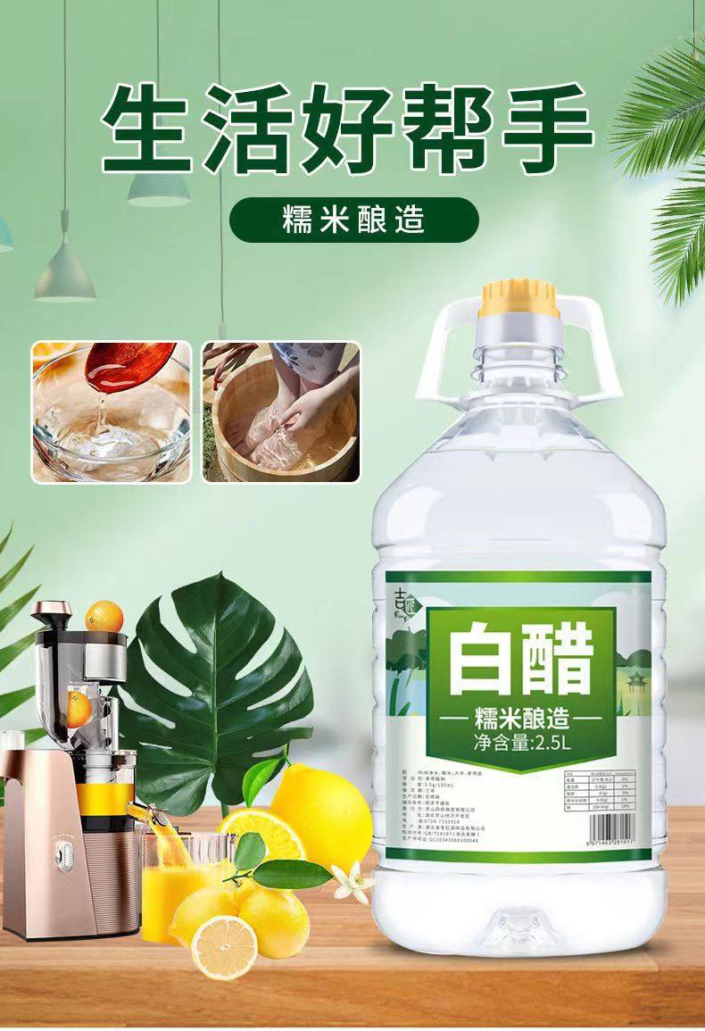 | Packaging specifications | [glutinous rice white vinegar 800ml*1 bottle],[glutinous rice white vinegar 800ml*2 bottles],[glutinous rice white vinegar 800ml*3 bottles],[glutinous rice white vinegar 2.5kg /1 barrel],ăwhite vinegar 2.5kgă+10 packsă30g baking sodaă |