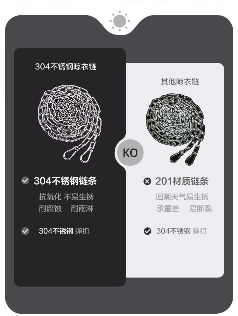 | Color | 304 clothes drying chain 4m + 2 snap buckles,304 clothes drying chain 3m + 2 snap buckles,304 clothes drying chain 5m + 2 snap buckles,304 clothes drying chain 6m + 2 snap buckles,304 clothes drying chain 7m + 2 snap buckles,304 clothes drying chain 8m + 2 snap buckles,304 clothes drying chain 9m + 2 snap buckles,304 clothes drying chain 10m + 2 snap buckles,304 clothes drying chain 12m + 2 snap buckles,304 clothes drying chain 15m + 2 snap buckles,304 clothes drying chain 20m + 2 snap buckles,304 clothes drying chain 25m + 2 snap buckles,304 clothes drying chain 30m + 2 snap buckles,304 clothes drying chain 1m + 2 snap buckles,304 clothes drying chain 2m + 2 snap buckles,304 clothes drying chain 4m +1 flower orchid +2 expansion hook,304 clothes drying chain 1m +1 flower orchid +2 expansion hook,304 clothes drying chain 1.5m +1 flower orchid +2 expansion hook,304 clothes drying chain 2m +1 flower orchid +2 expansion hook,304 clothes drying chain 3m +1 flower orchid +2 expansion hook,304 clothes drying chain 5m +1 flower orchid +2 expansion hook,304 clothes drying chain 6m +1 flower orchid +2 expansion hook,304 clothes drying chain 7m +1 flower orchid +2 expansion hook,304 clothes drying chain 8m +1 flower orchid +2 expansion hook,304 clothes drying chain 9m +1 flower orchid +2 expansion hook,304 clothes drying chain 10m +1 flower orchid +2 expansion hook,304 clothes drying chain 12m +1 flower orchid +2 expansion hook,304 clothes drying chain 15m +1 flower orchid +2 expansion hook,304 clothes drying chain 20m +1 flower orchid +2 expansion hook,304 clothes drying chain 25m +1 flower orchid +2 expansion hook,304 clothes drying chain 30m +1 flower orchid +2 expansion hook,304 clothes drying chain 1.5m + 2 snap buckles |