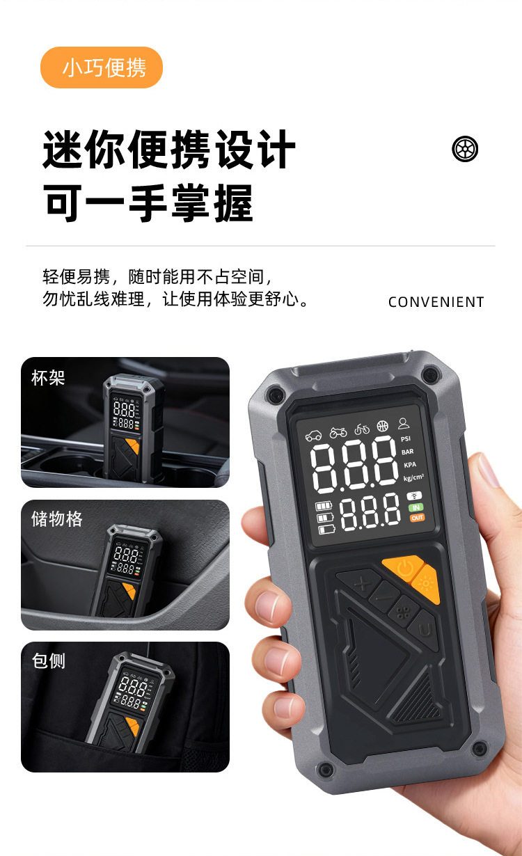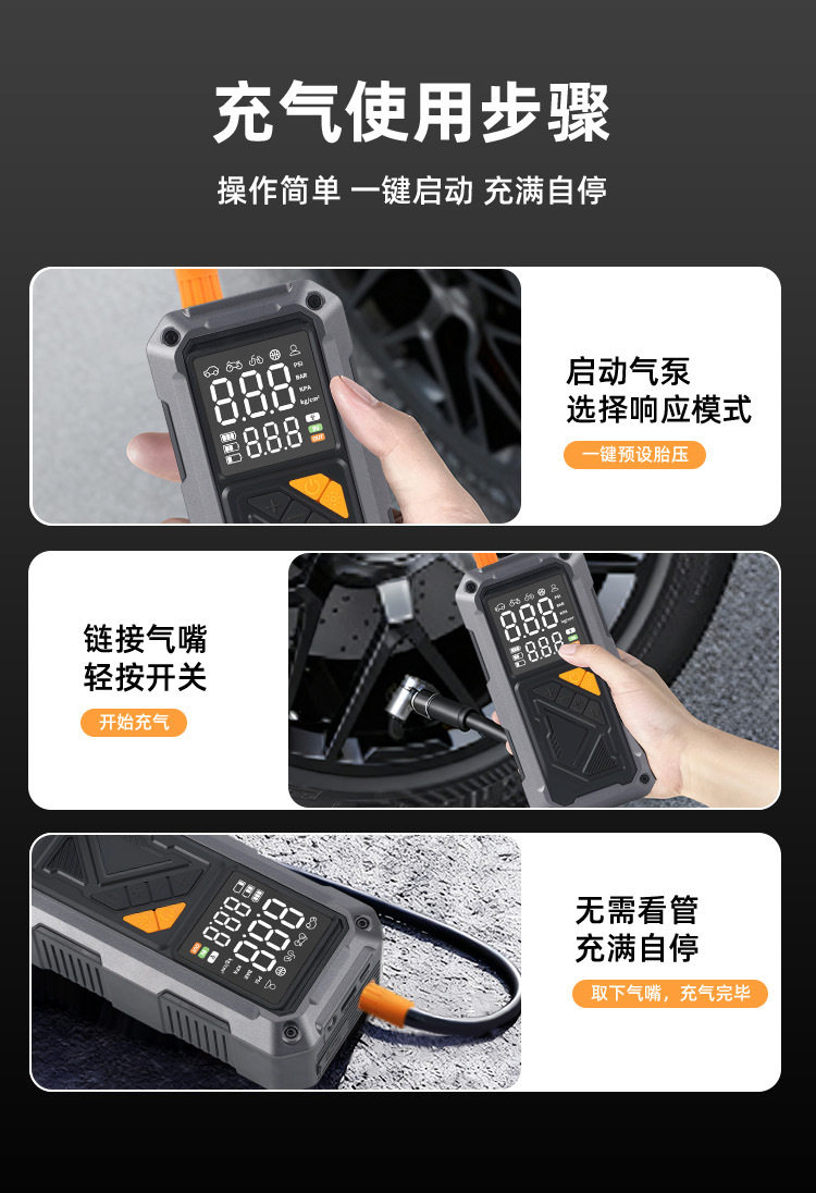 Cross-Border New Car Air Pump, Portable Tire Inflator, Small Multi-Functional Air Pump with Electric Charging and Inflating All-In-One Machine