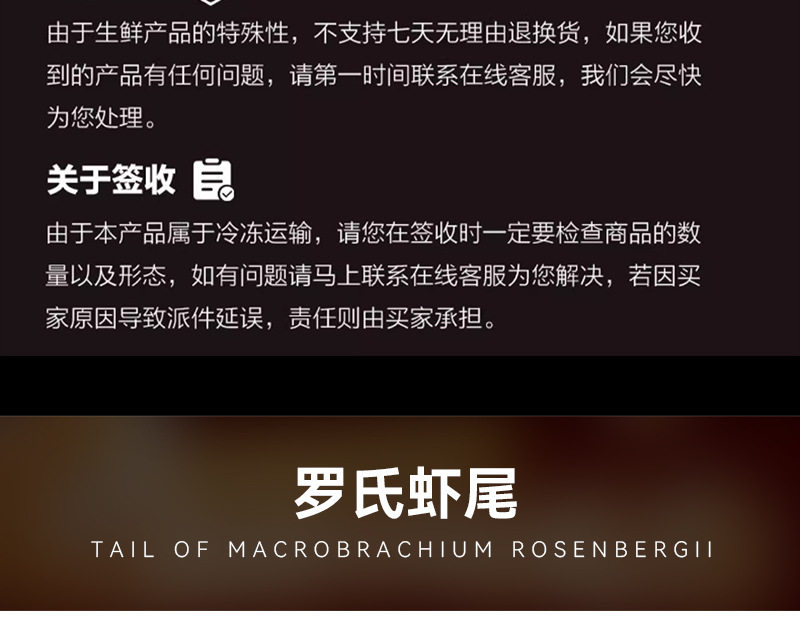 | Packaging specifications | 4-6 lobster shrimp ( 1.25kg / box ),6-8 lobster shrimp ( 1.25kg / box ),8-10 lobster shrimps ( 0.75kg / box ),10-12 lobster shrimps ( 0.75kg /box ),13-15 lobster shrimp ( 0.75kg / box ),16-20 lobster shrimp (0.75kg /box),21-25 lobster ( 0.75kg / box ),26-30 lobster shrimp (0.75kg /box),31-35 lobster shrimp ( 0.75kg / box ),36-40 lobster shrimp (0.75kg /box),40-60 lobster ( 0.5kg / box ),60-80 lobster shrimp (0.5kg /box),80-100 lobster ( 0.5kg / box ),100-120 lobster shrimps (0.5kg /box),120-150 rock shrimps (0.5kg /box) |